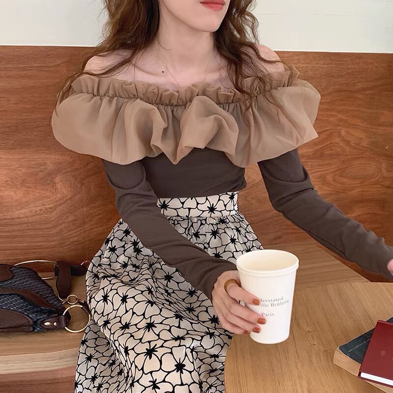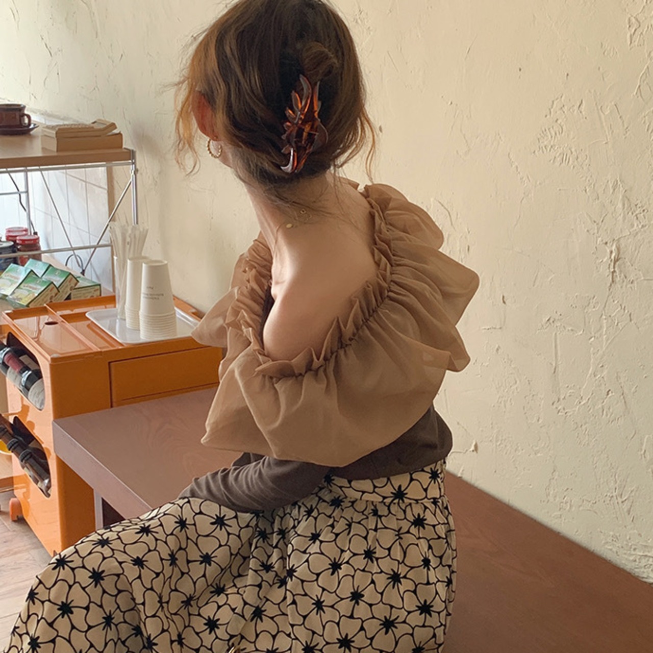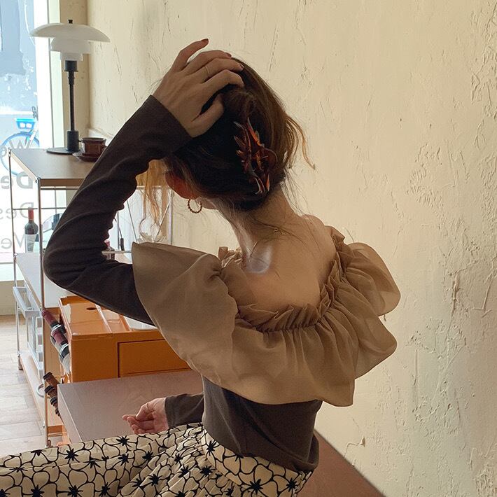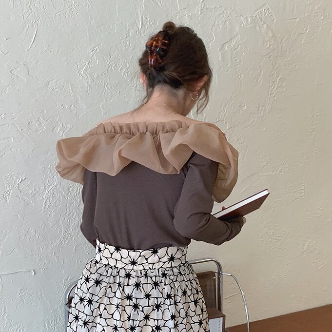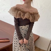 ボリュームのあるフレアが胸元周りを華奢に見せてくれます。
