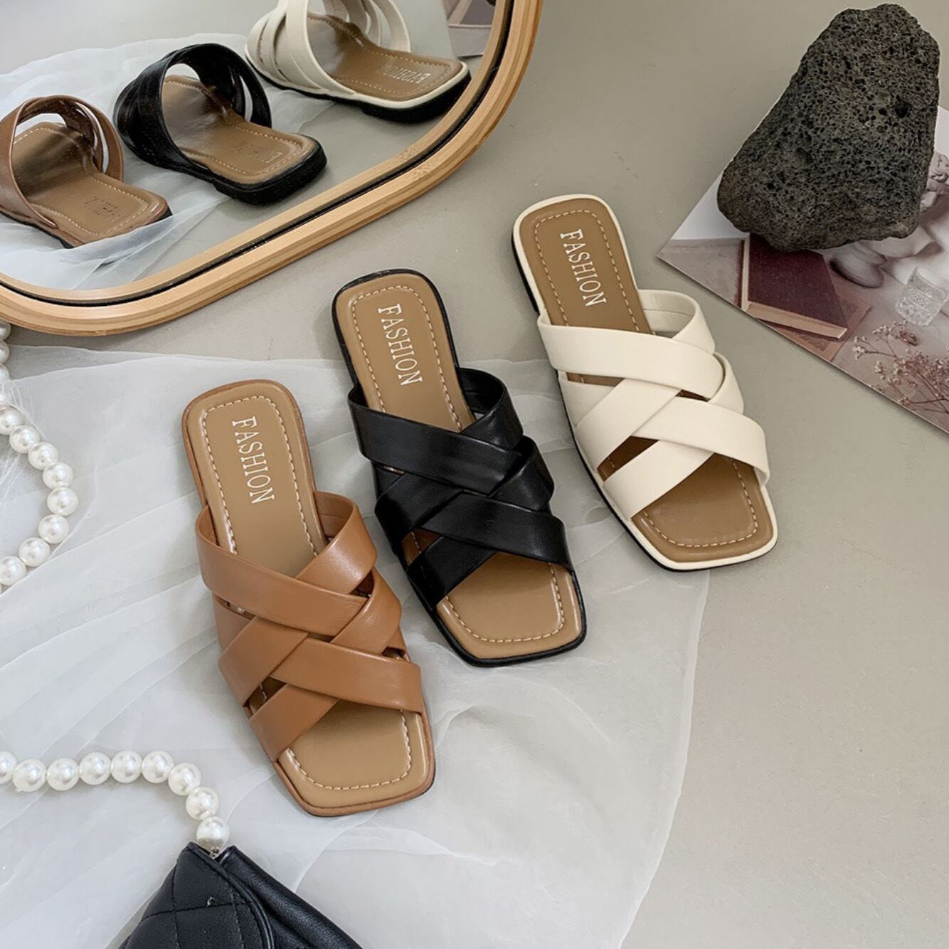 様々なシーンで幅広く活躍するクロスフラットサンダル☆
