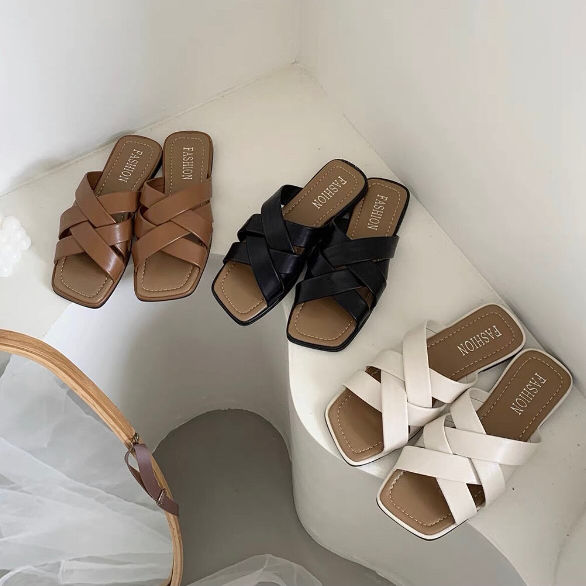 Cross flat sandal