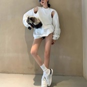 ゆったりとしたフォルムで気になるボディラインもカバー。