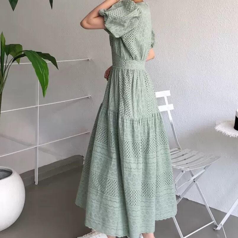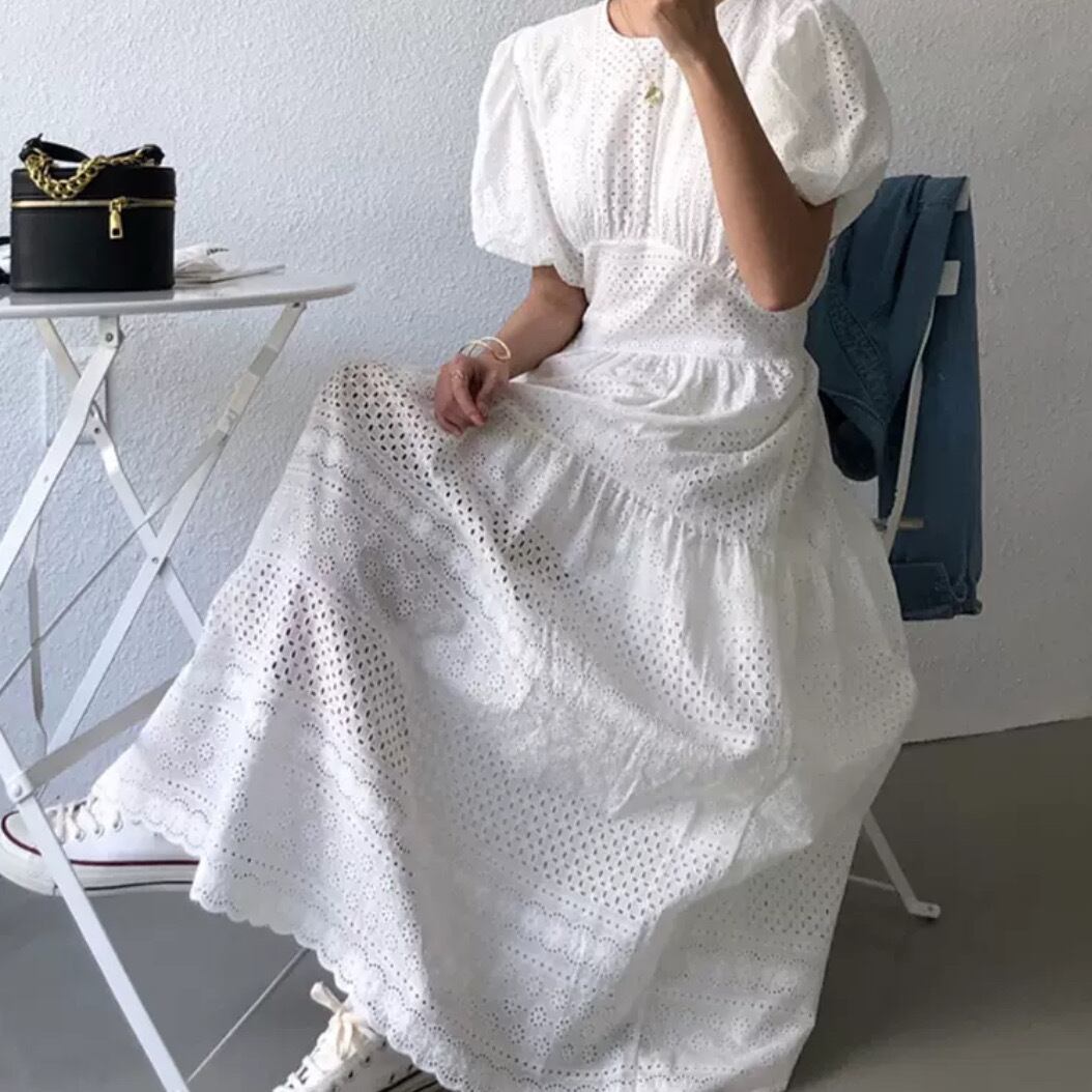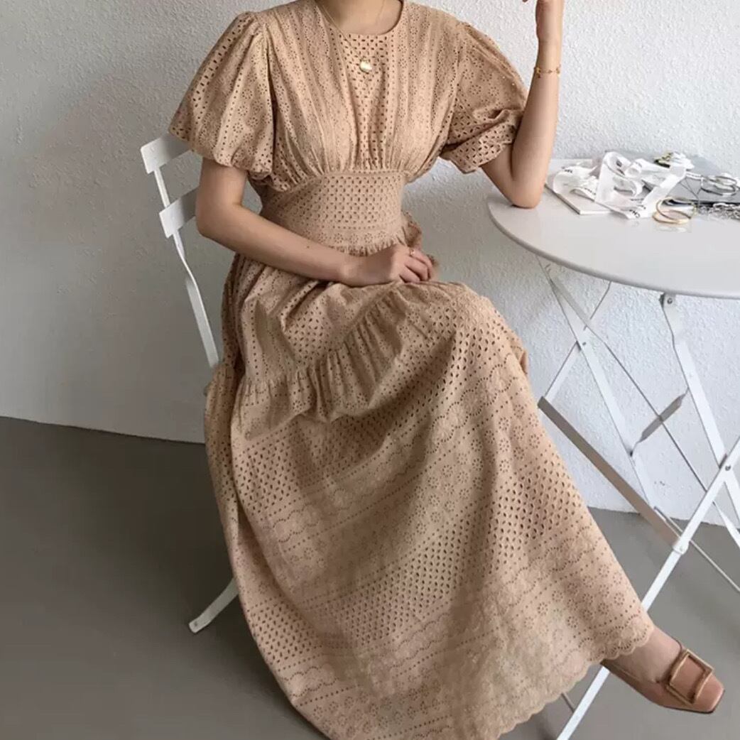ロング丈だからこそ、歩くたびにゆれる裾まわりがウエストから動きのあるAラインに。