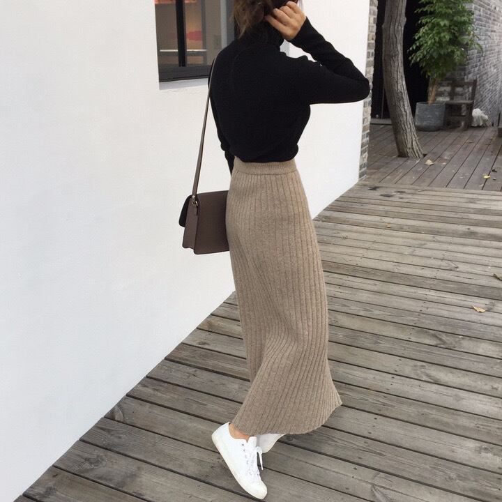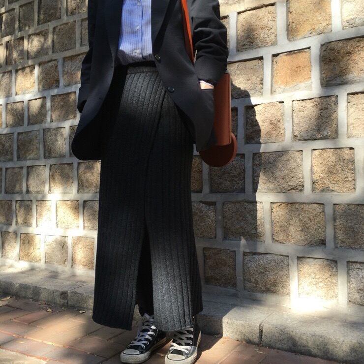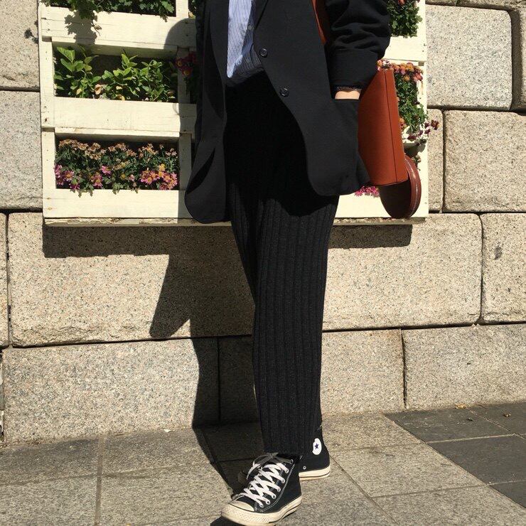 タイトなシルエットですが、柔らかなニット素材で伸縮性があり、ウエストゴムなので着心地が良いのもポイントです◎