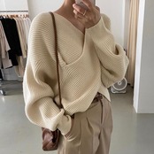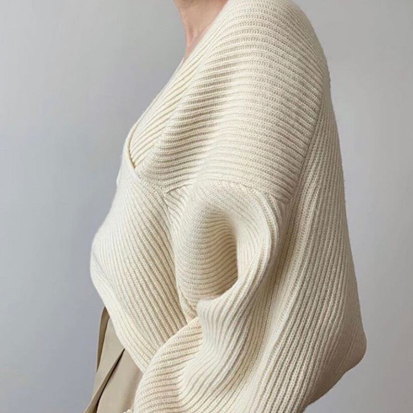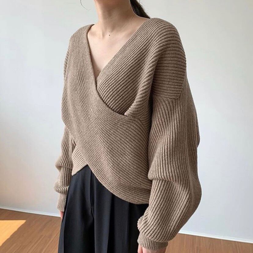 ふんわりとした肌触りのクロスデザインニットはコーデのアクセントにぴったりな一枚。