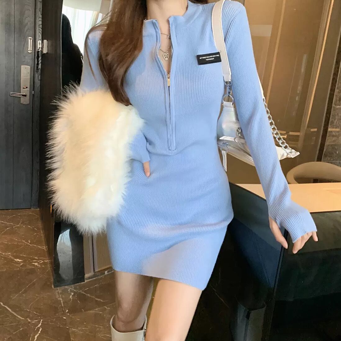 首元のジッパーと指穴カットソーで、こなれ感を演出◎