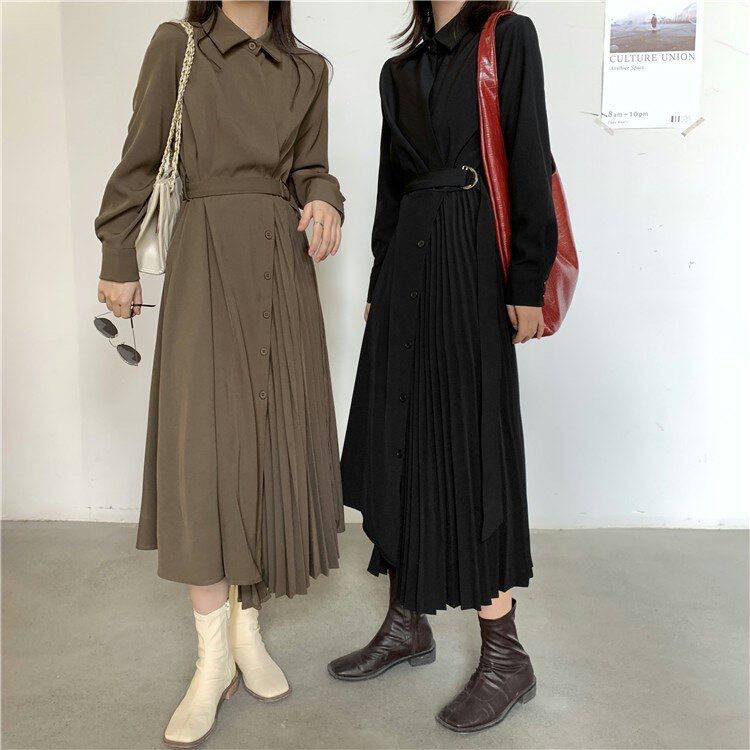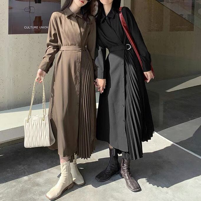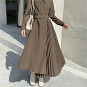 左右不対象で半分はプリーツ、半分はアシメフレアになっているデザインワンピースです。