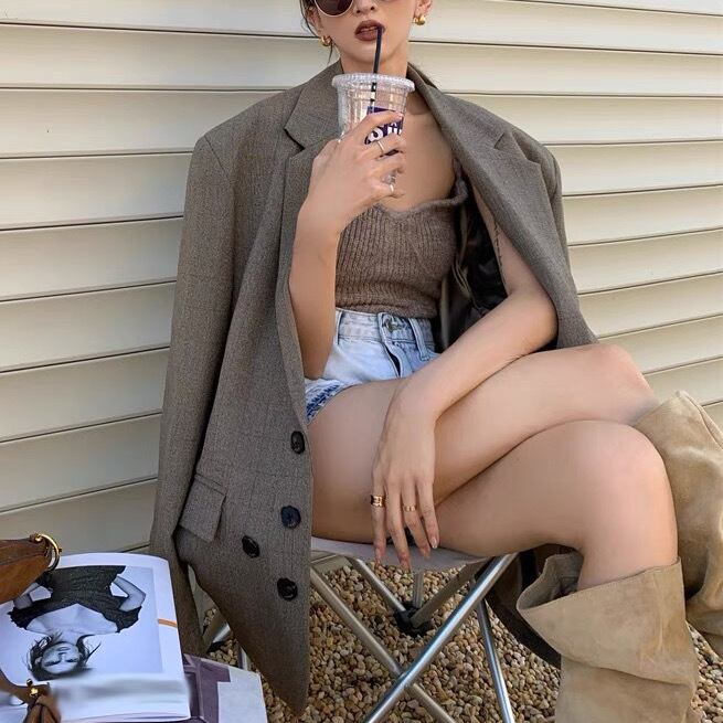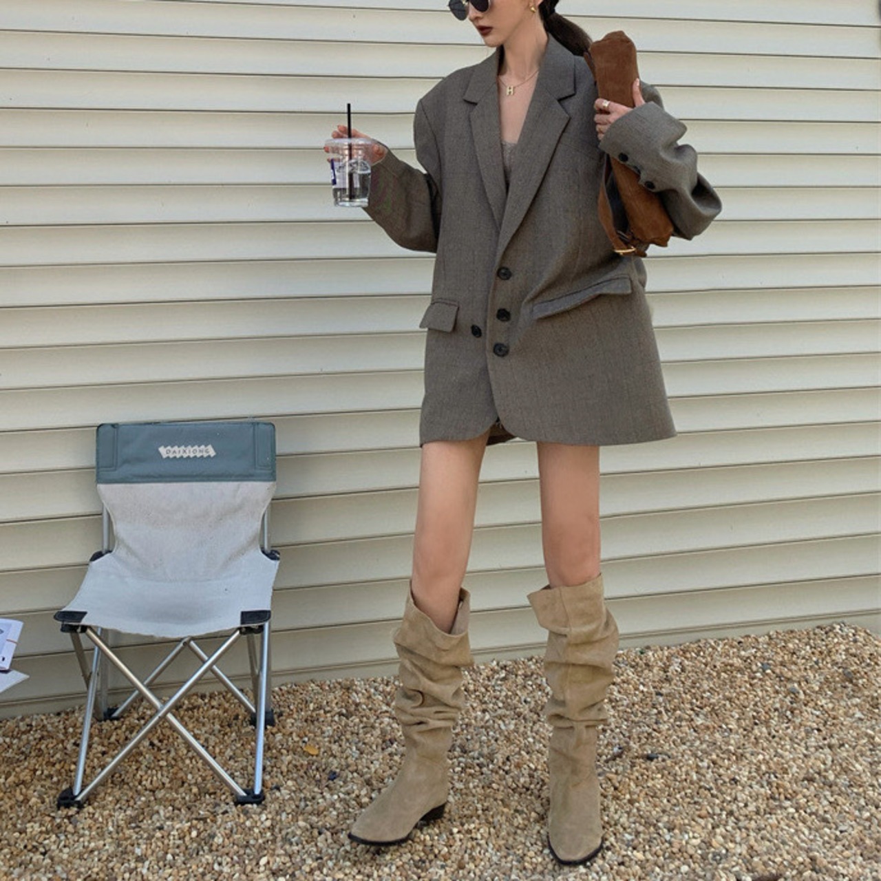 ミニ丈のボトムと合わせてジャケットワンピース風にも、