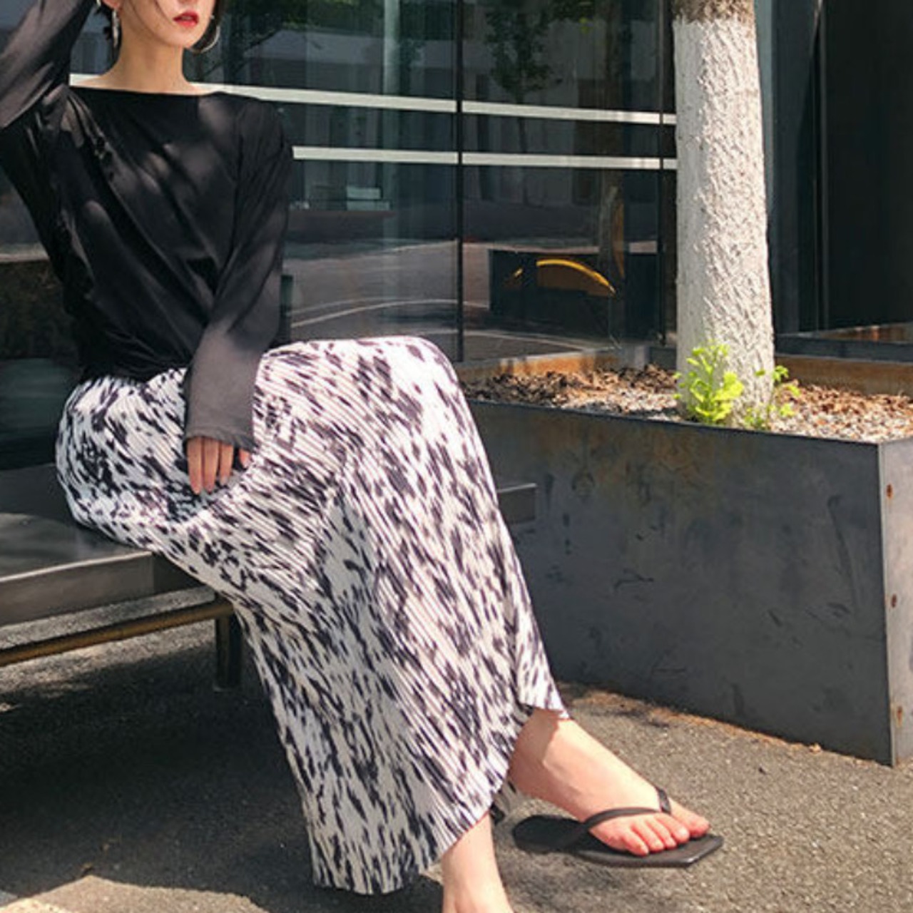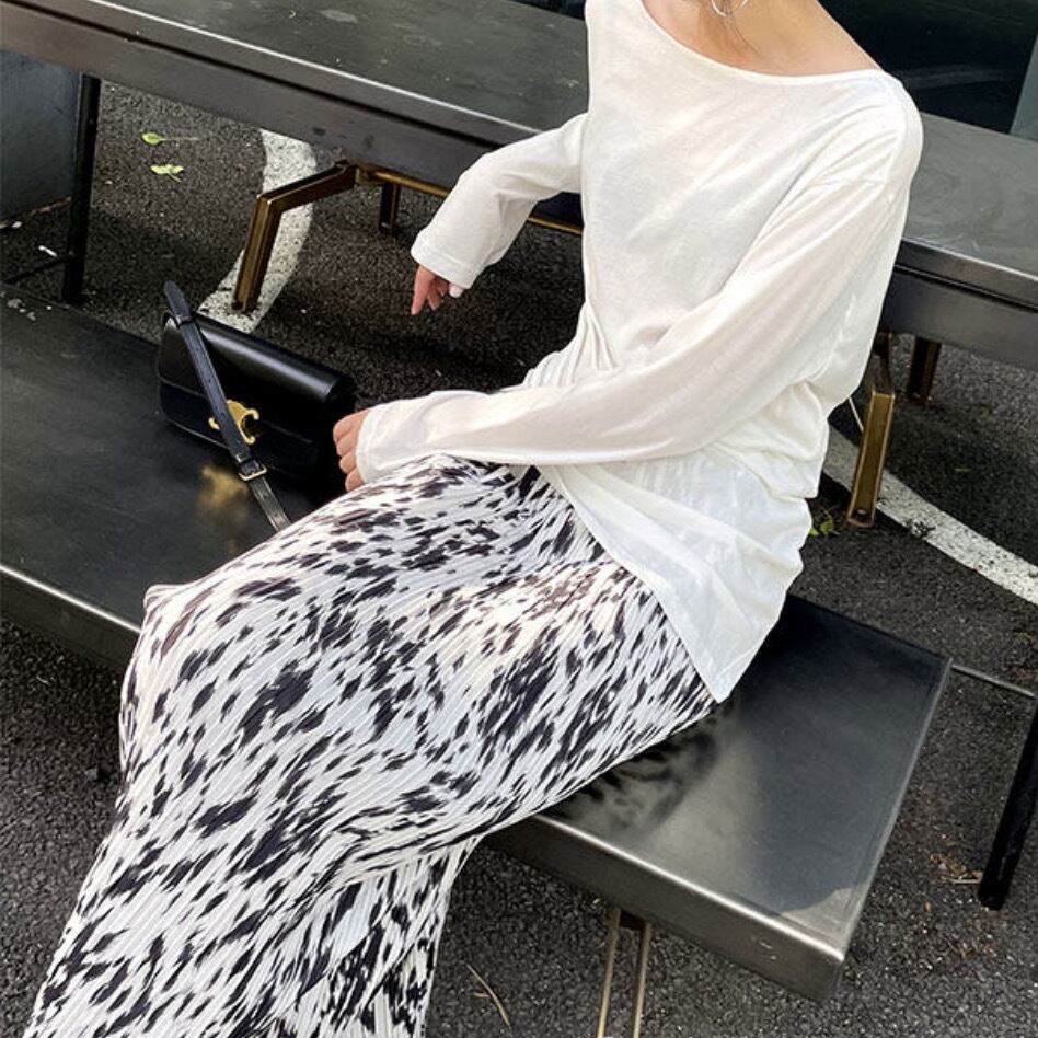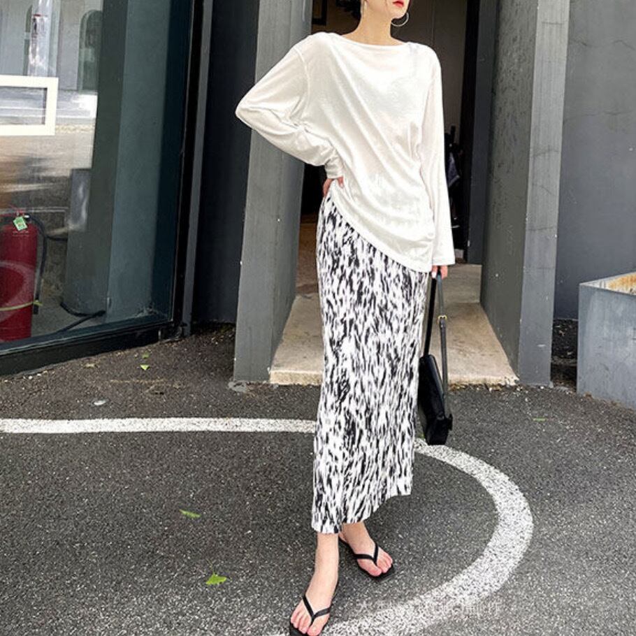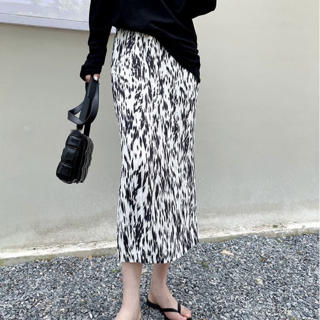 オリジナルプリントの手書き風のヒョウ柄がポイントのスカート。