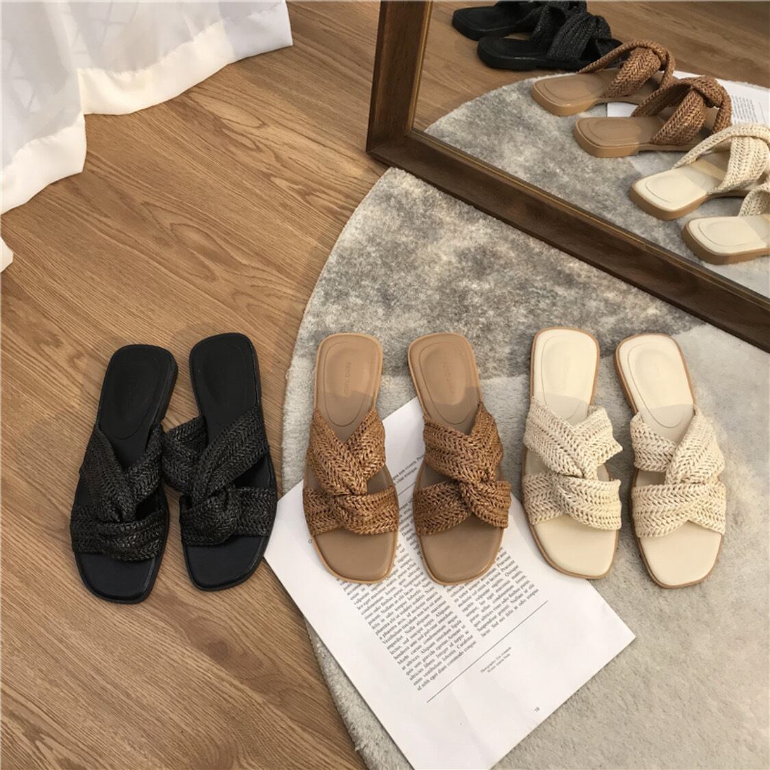 幅広いスタイルが楽しめるフラットサンダルです。