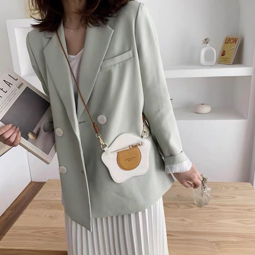 トーストと目玉焼きがセットになった、ショルダーバッグです。