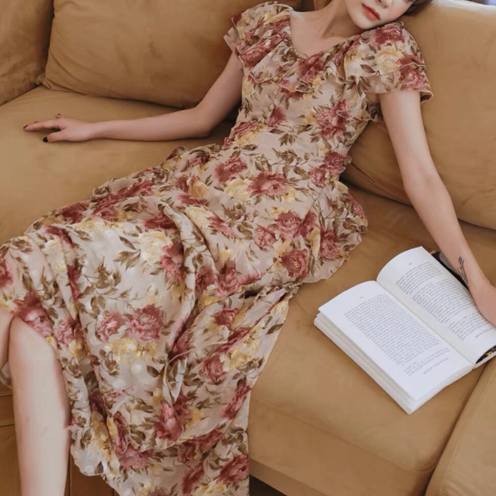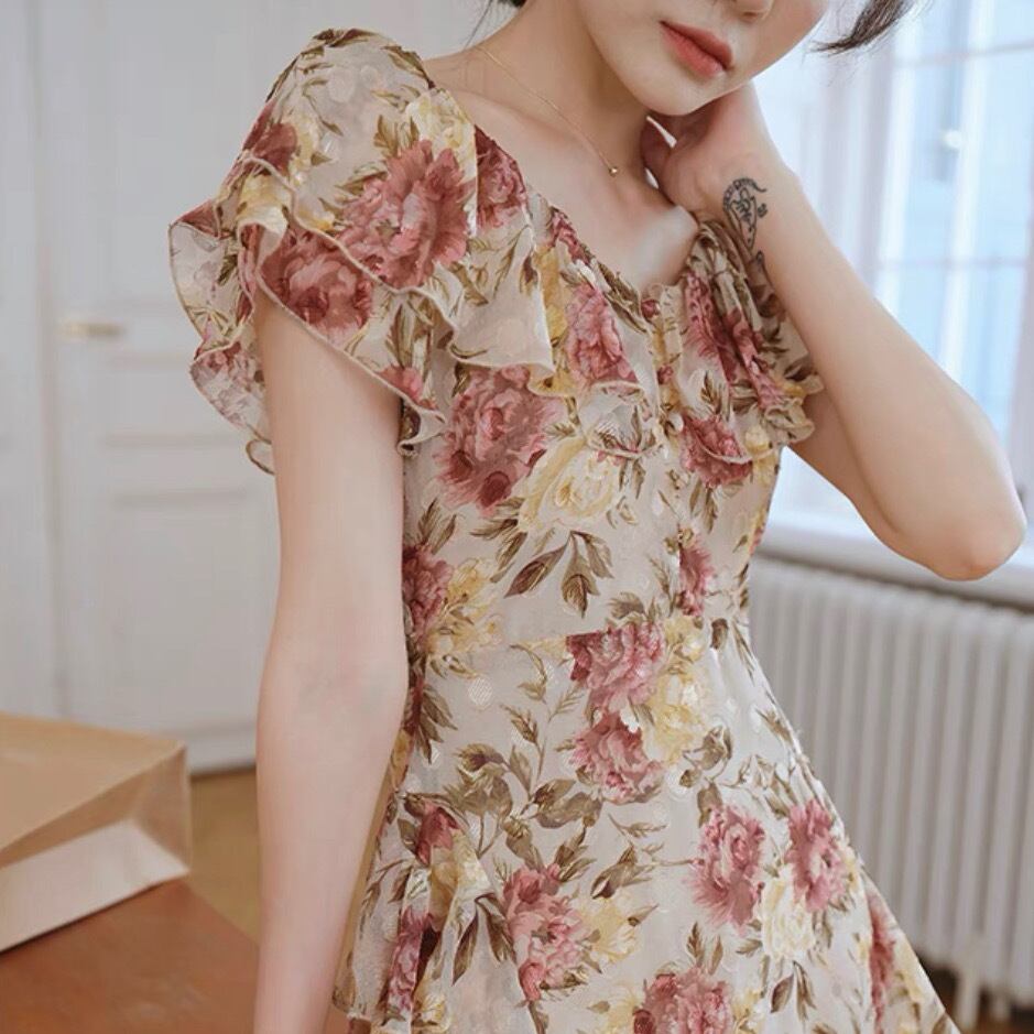 大人っぽい花柄と女性らしさの詰まったデザインが映えるワンピース。