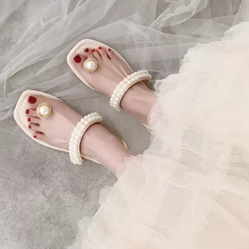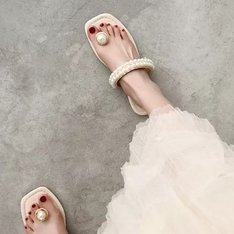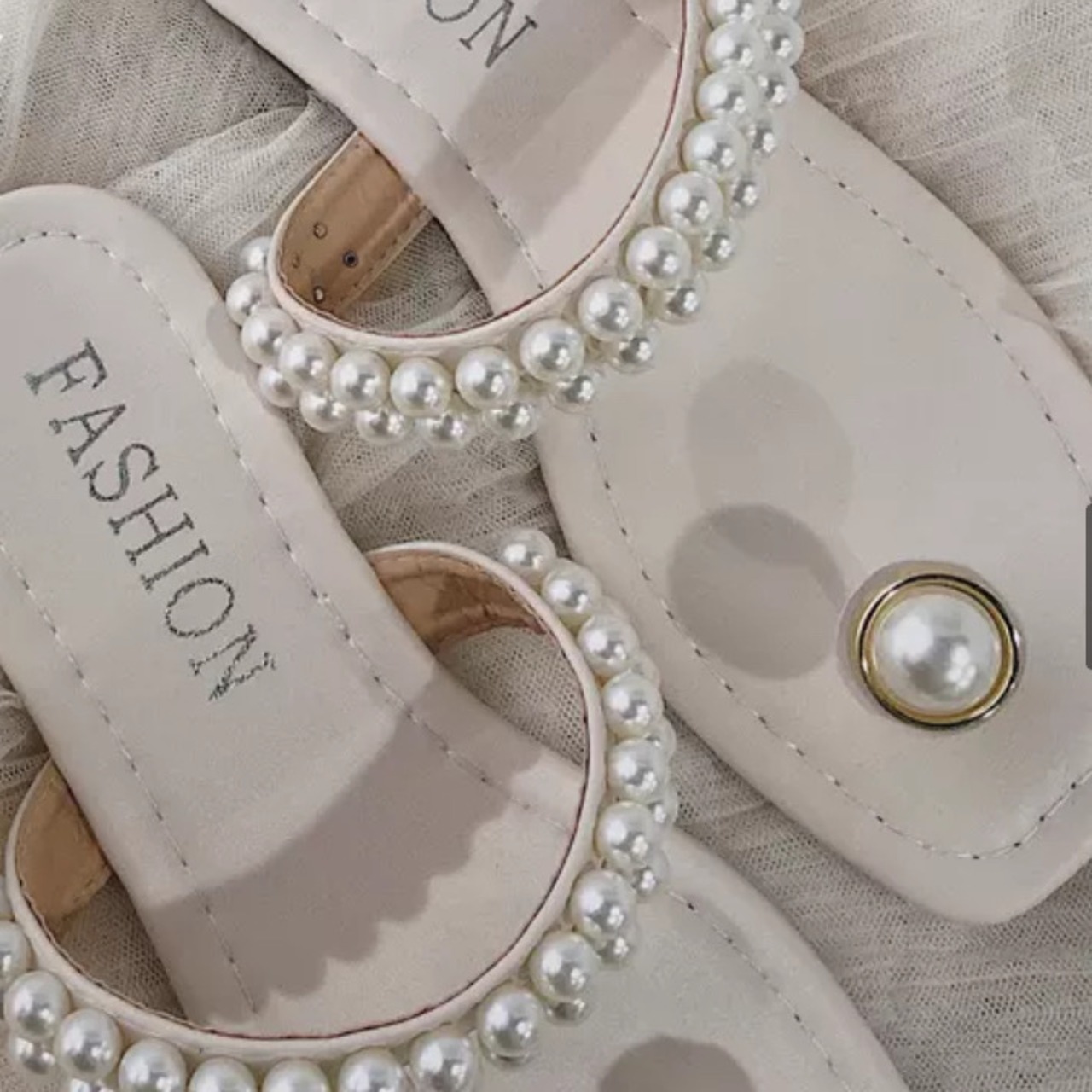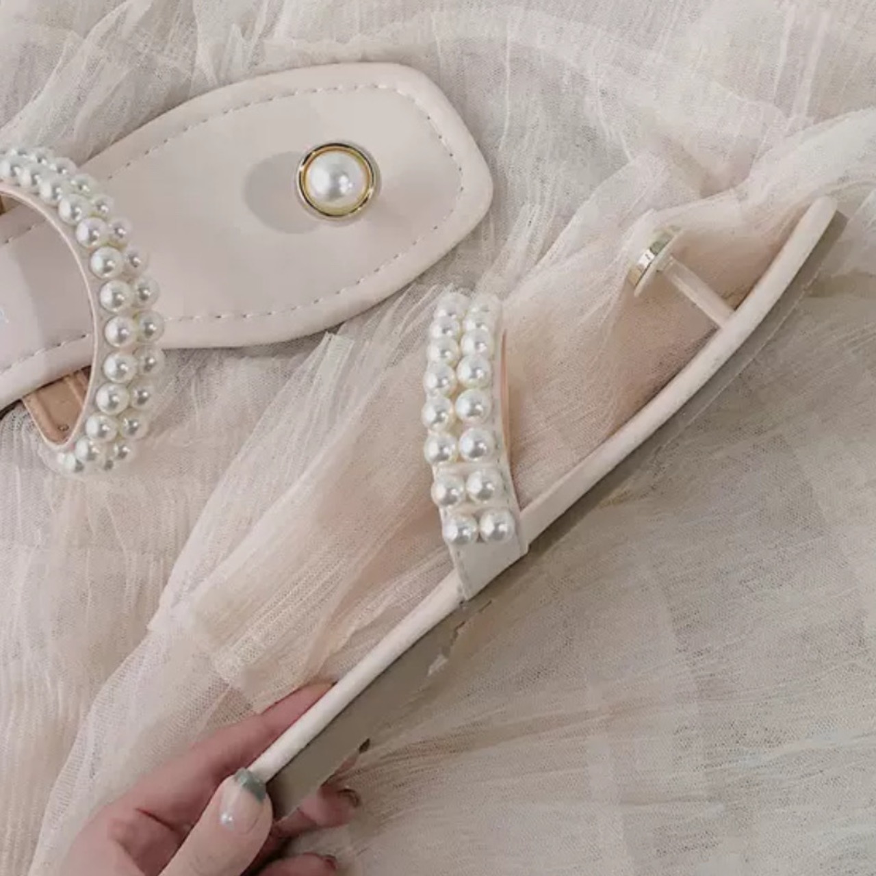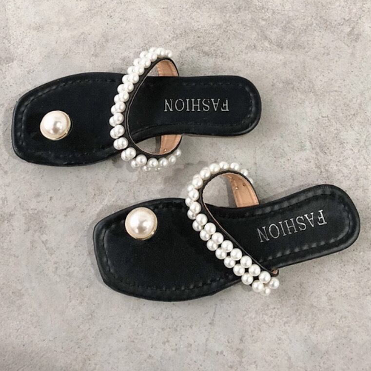 華やかな雰囲気のパール調飾りは、カジュアルなスタイルにもマッチ。