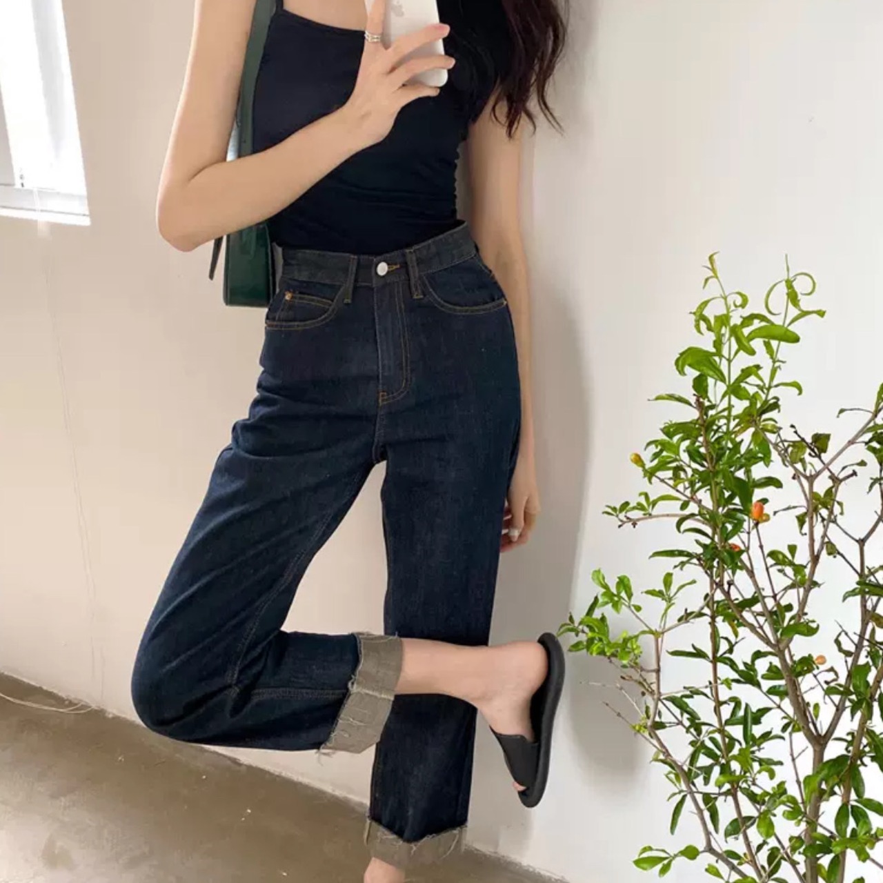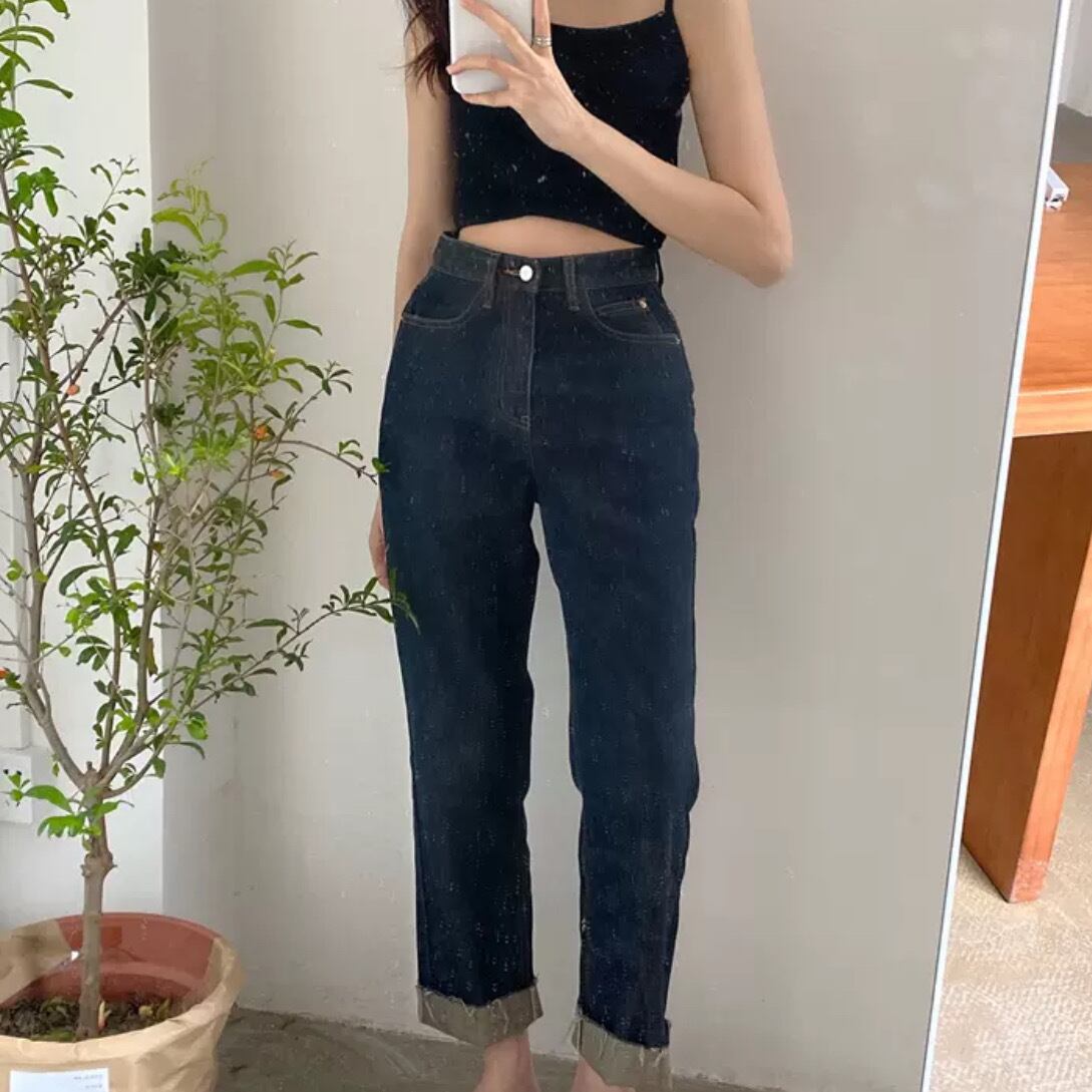 トレンドの裾切りっぱなしが軽快なストレートデニム。