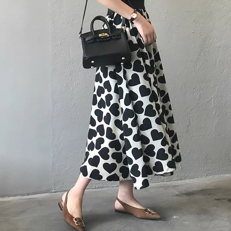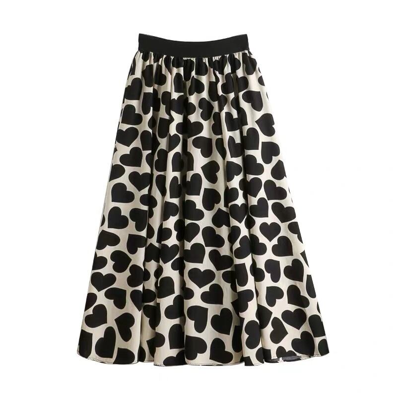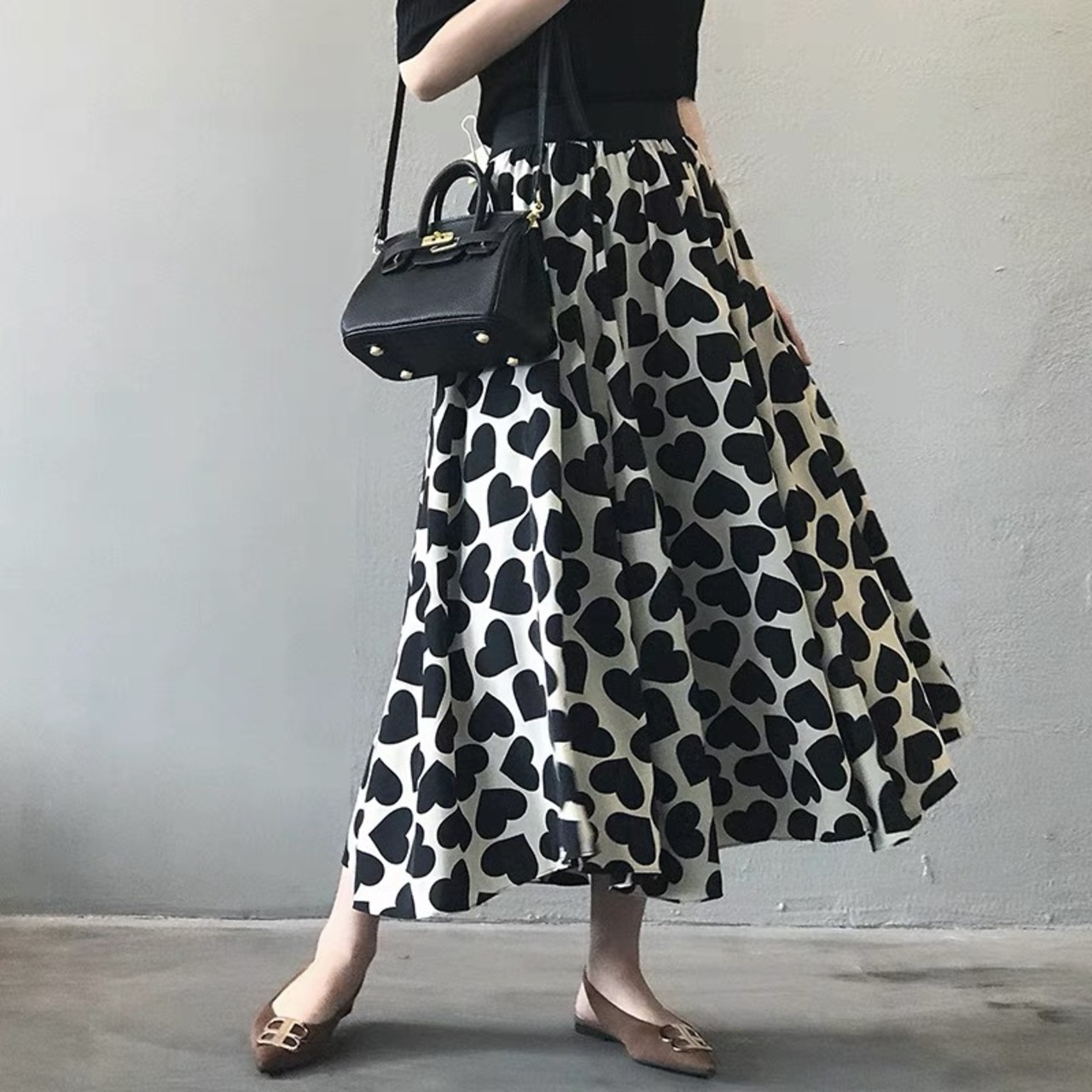 モノトーンで甘さを抑えた大人なハート柄スカート。