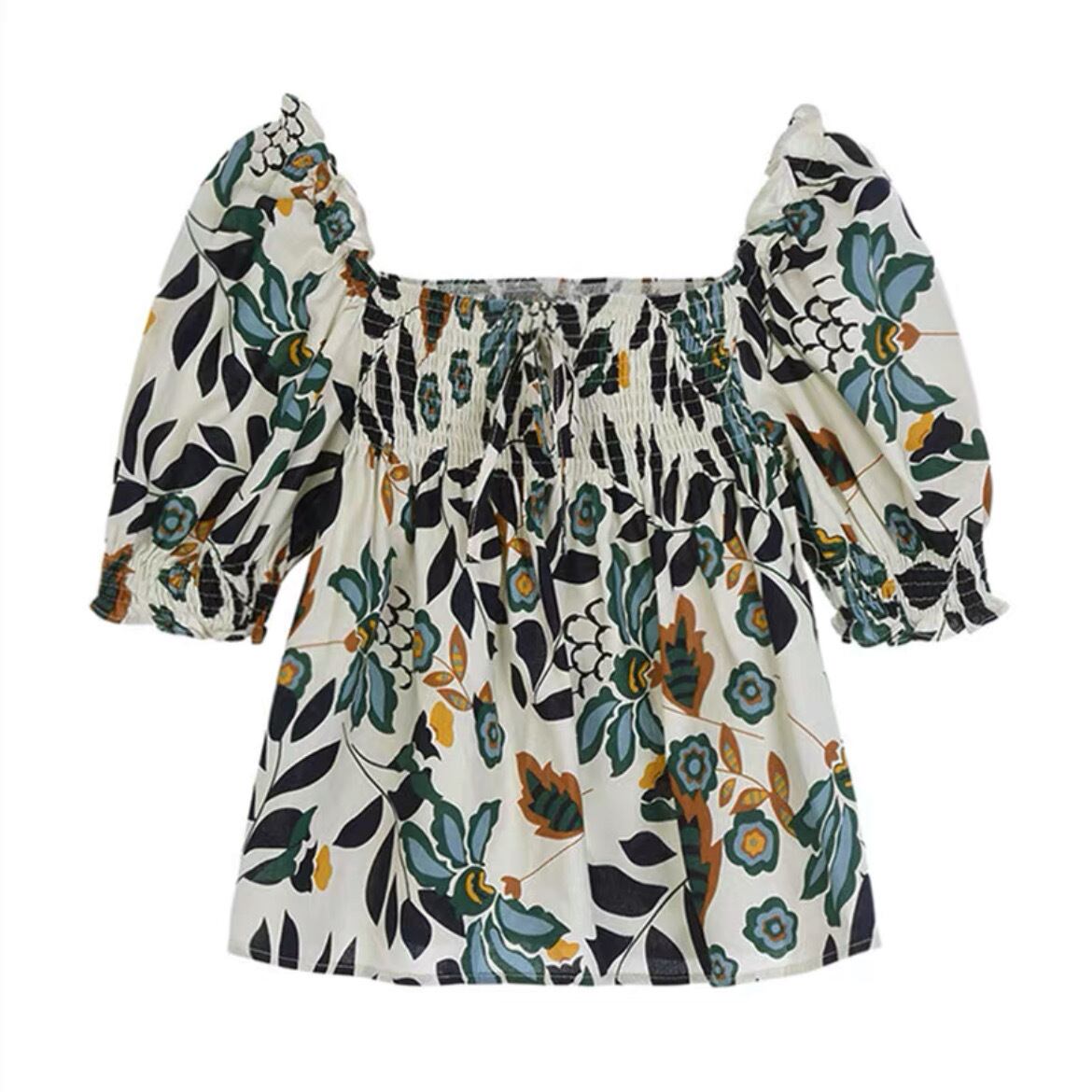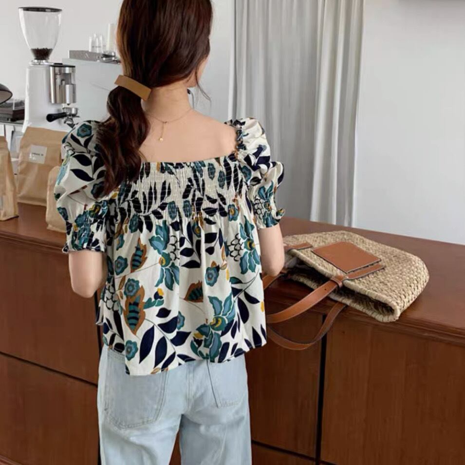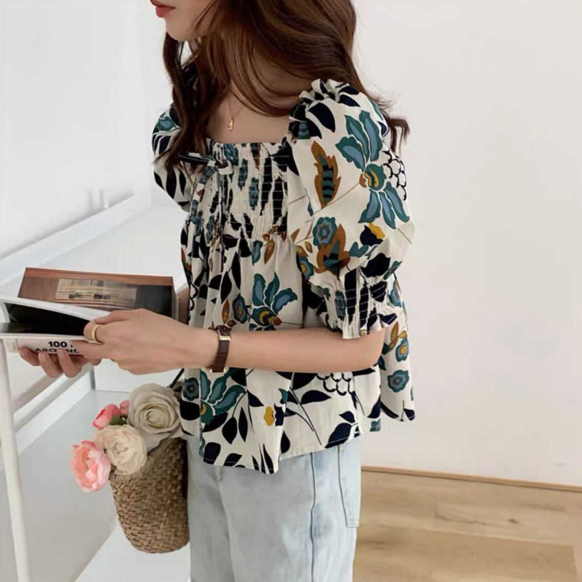 首回りが綺麗にみえるスクエアネックで仕上げたブラウス。