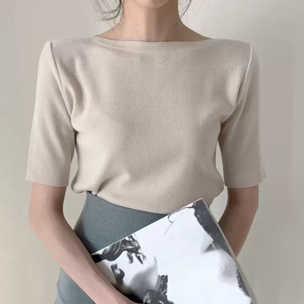 カジュアルなボトムスにもフェミニンなスカートにもマッチする、着回しできるトップスです。