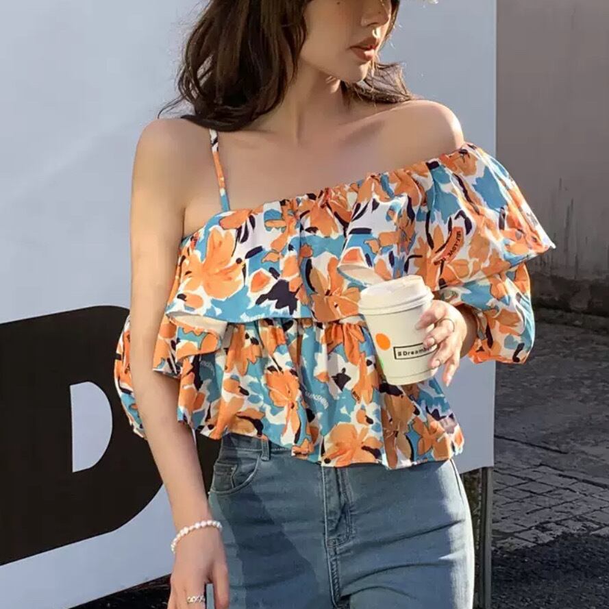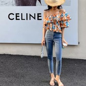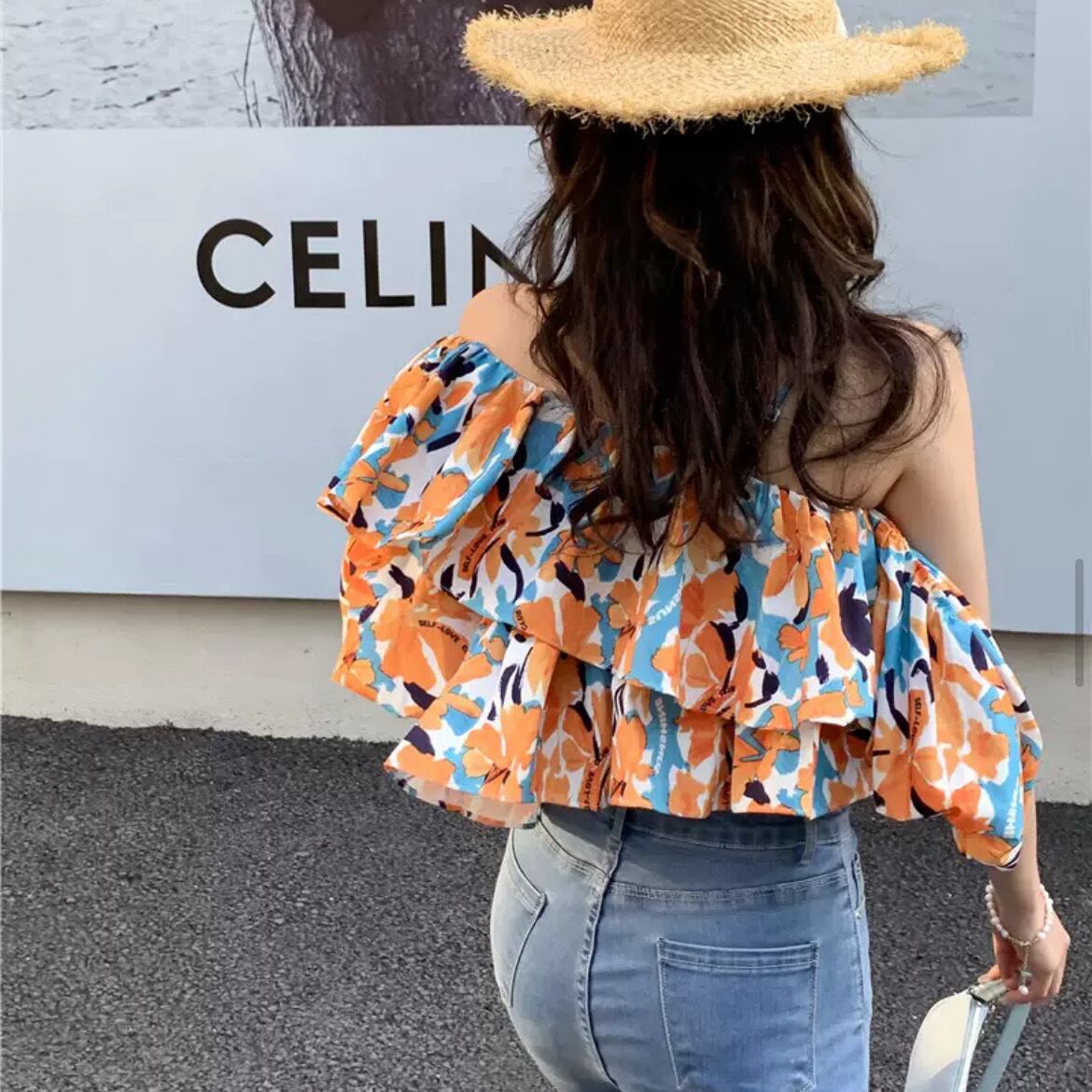 夏にピッタリな、ヘルシーさを表現したオフショルトップス。