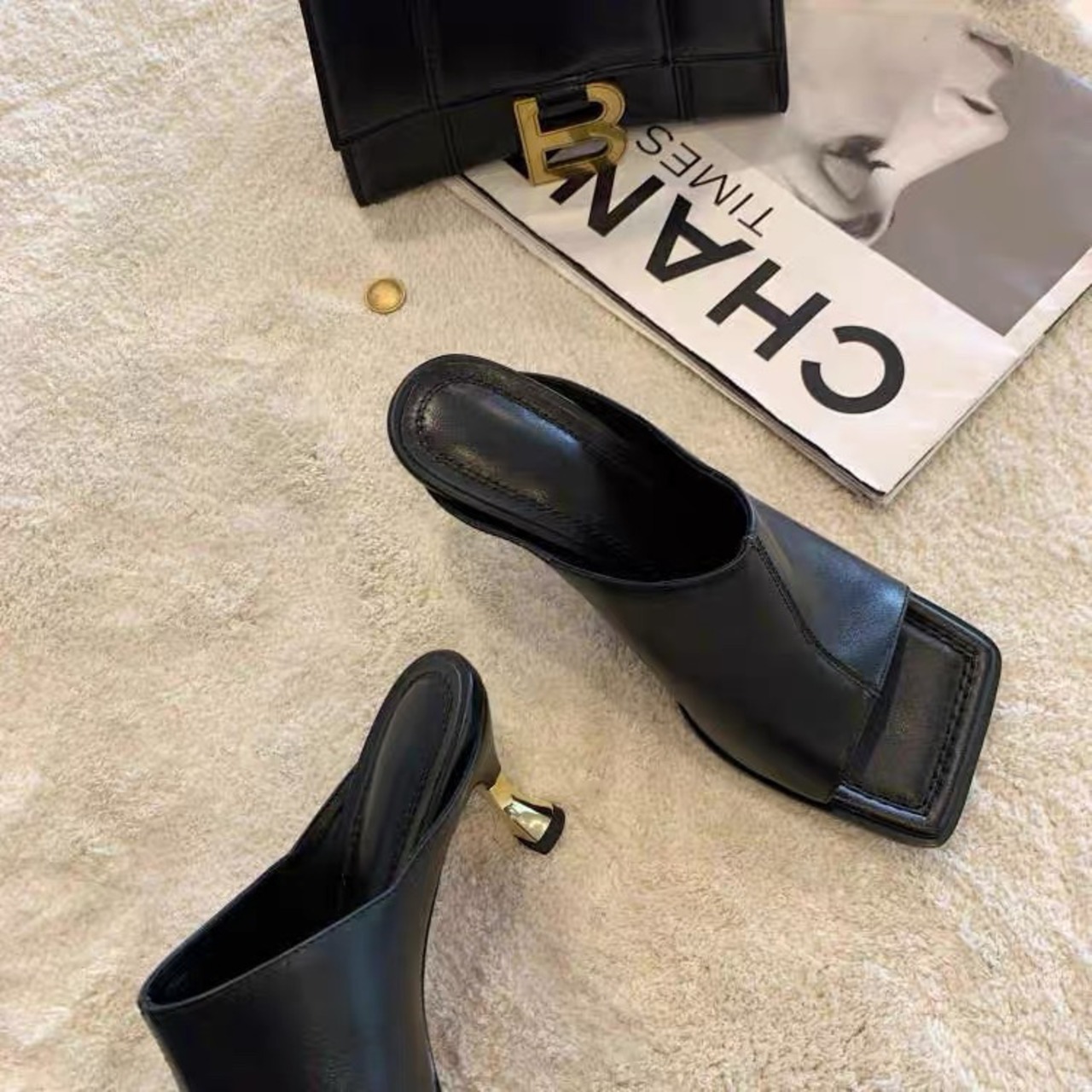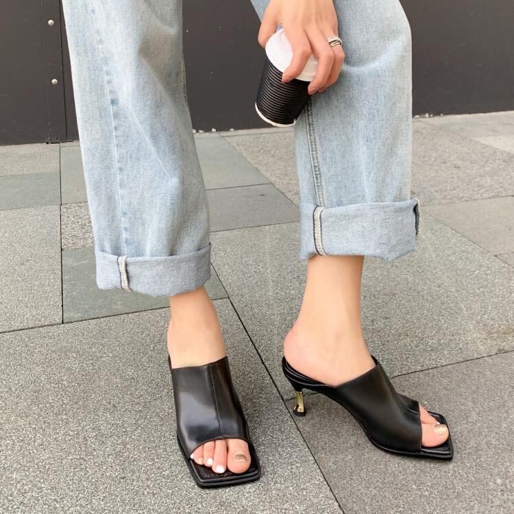 ミュールサンダルもスクエアトゥに更新するだけでお洒落。