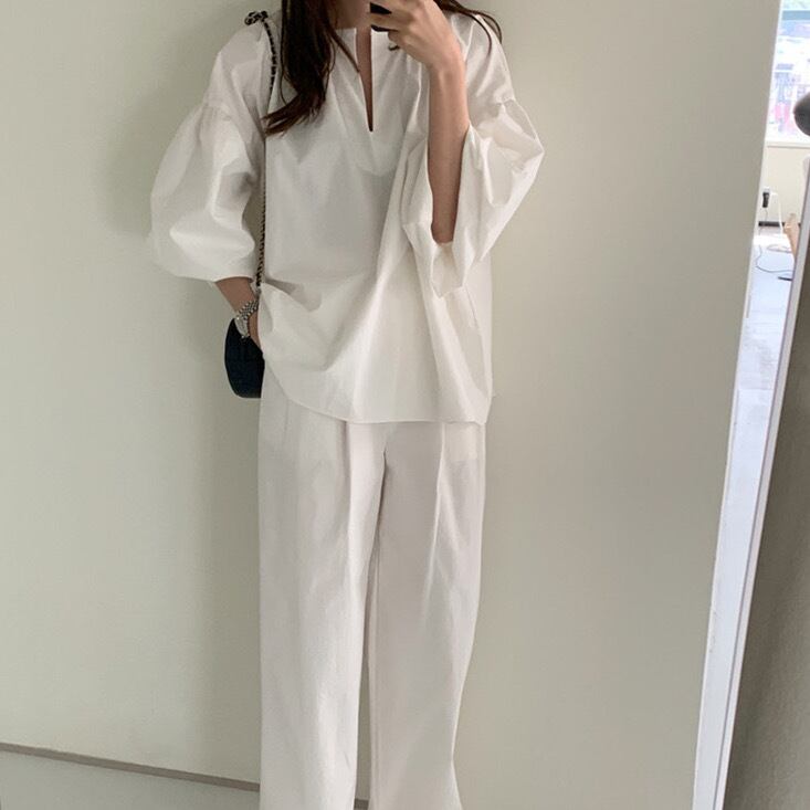 シンプルなデザインながらにボリューム感のある袖がおしゃれ。