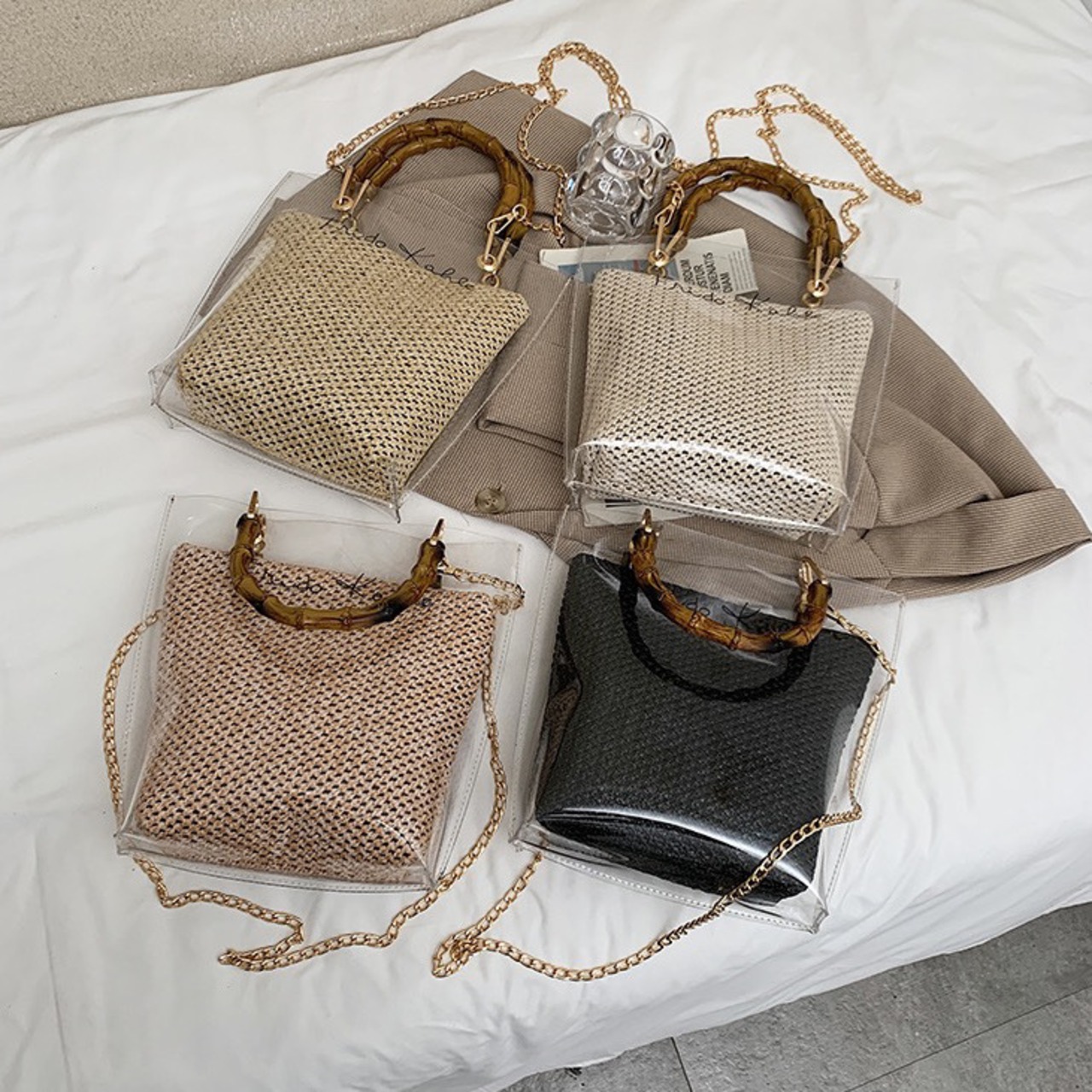 クリアバッグなのでカラーのお洋服との相性も抜群です。