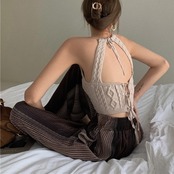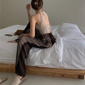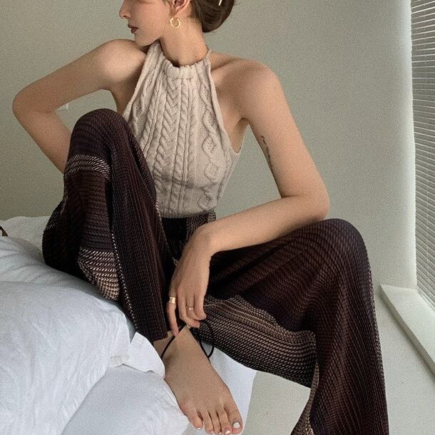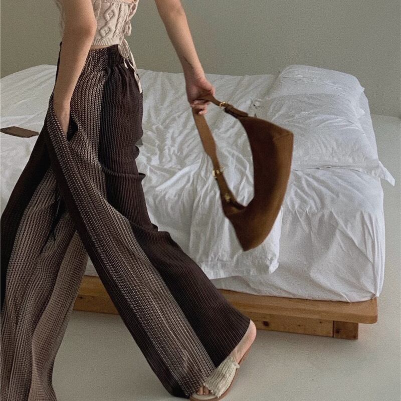 デザイン性がありながら、ウエストはゴム仕上げなので楽ちんにお洒落を楽しめて