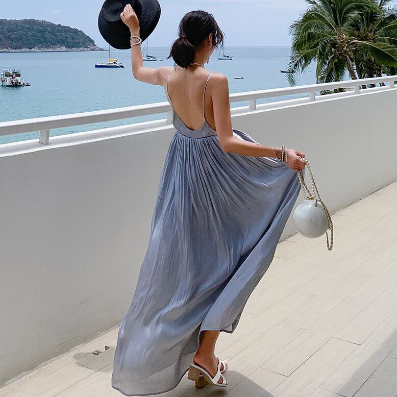 微光沢があり、女性らしい落ち感のある素材で仕上げたキャミワンピース。