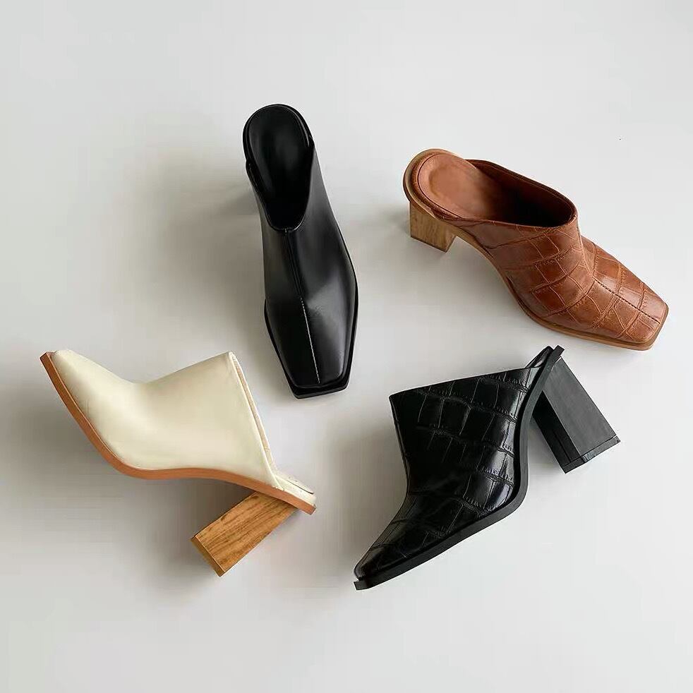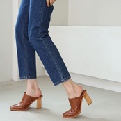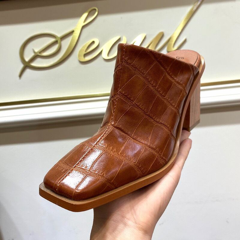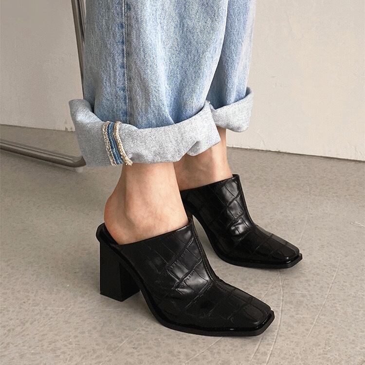 スクエアトゥのデザインがトレンド感のあるミュール。