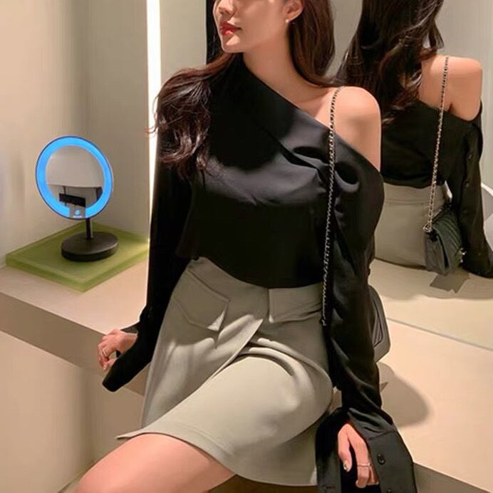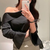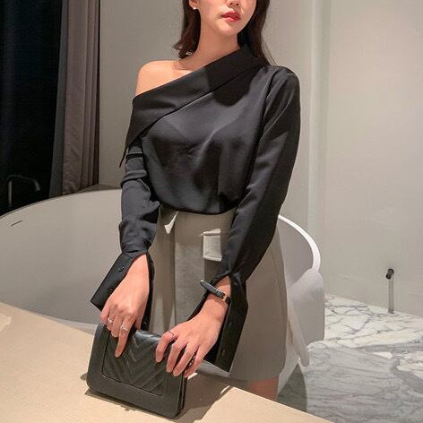 片方の肩だけオフショルダーでポイントをつけたトップスです。