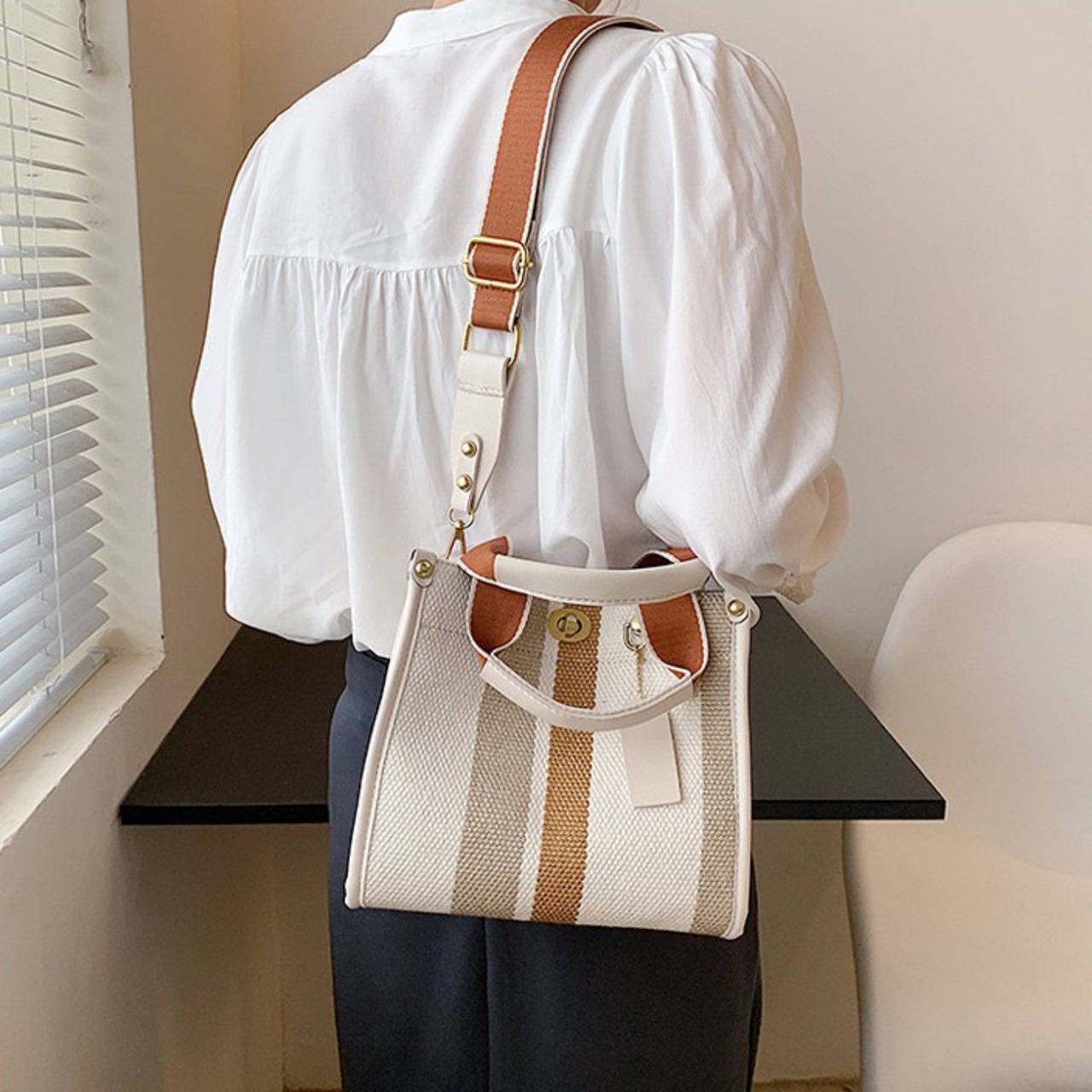 使いやすいサイズのトートバッグで、通勤通学はもちろんちょっとしたお出かけにもピッタリなバッグです。