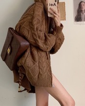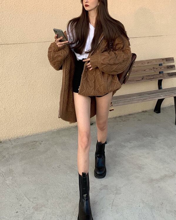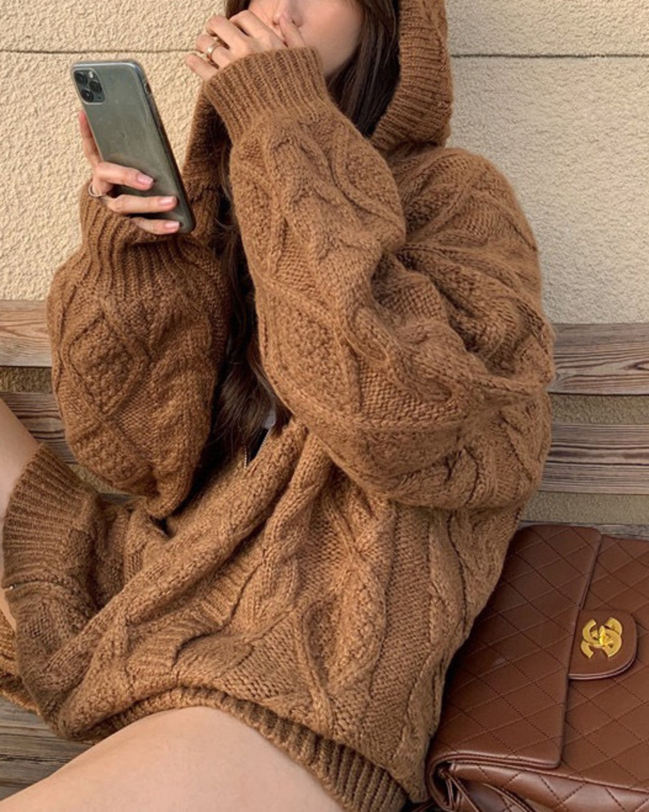 フードの付いたニットカーディガンは可愛くカジュアルに魅せてくれます。