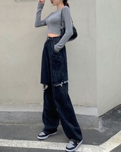 オシャレなダメージ仕様で、ヴィンテージ感のある風合いが、大人カジュアルなスタイリングにぴったり。