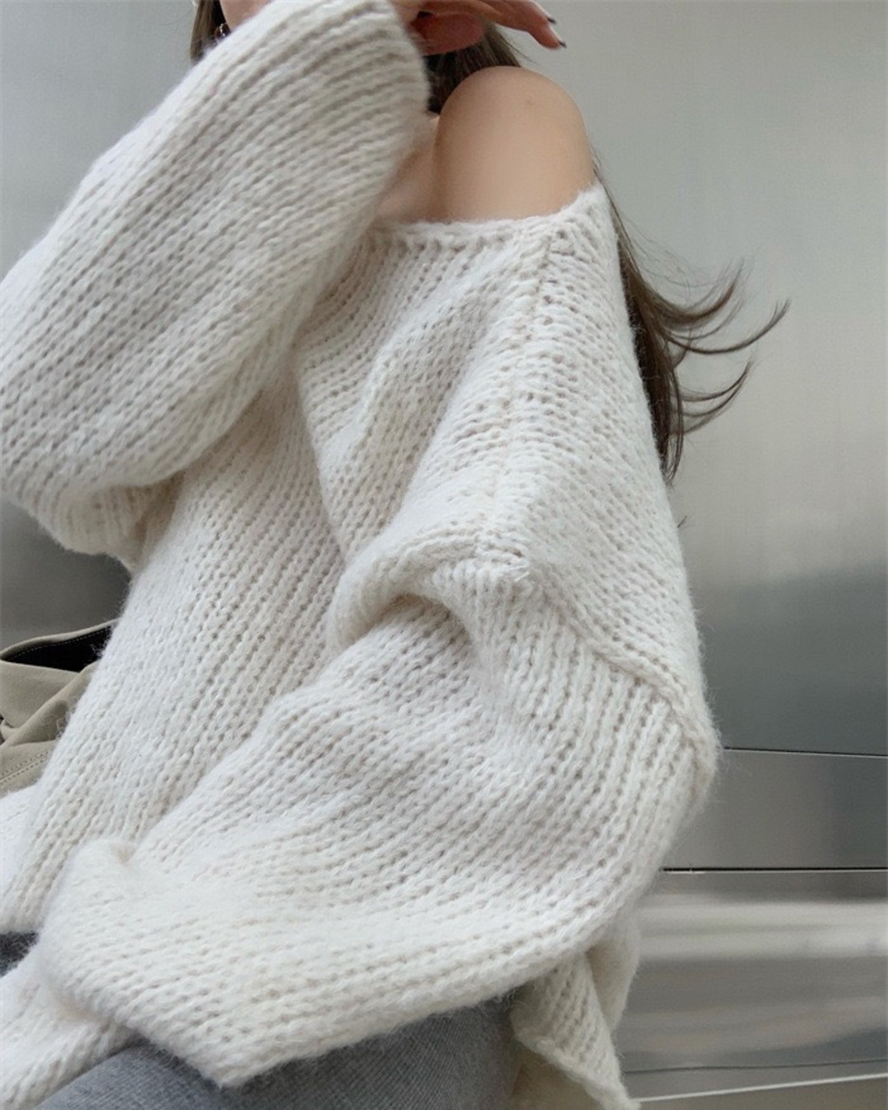 大きめのシルエットが魅力のボリュームシルエットニット。