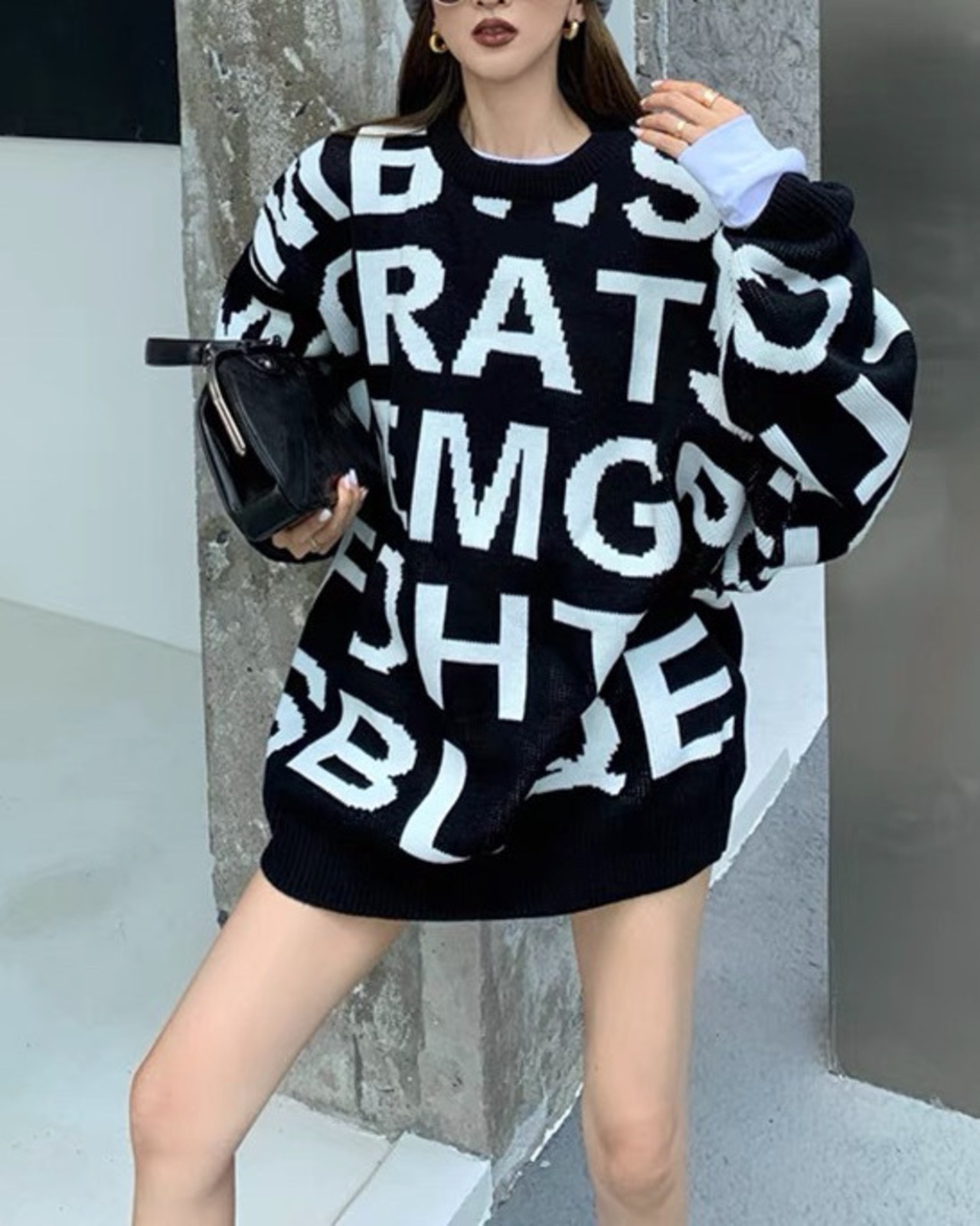 ゆったりとしたアイテムなので、タイトめなボトムスと合わせたモードな着こなしの出来るニットトップスです。