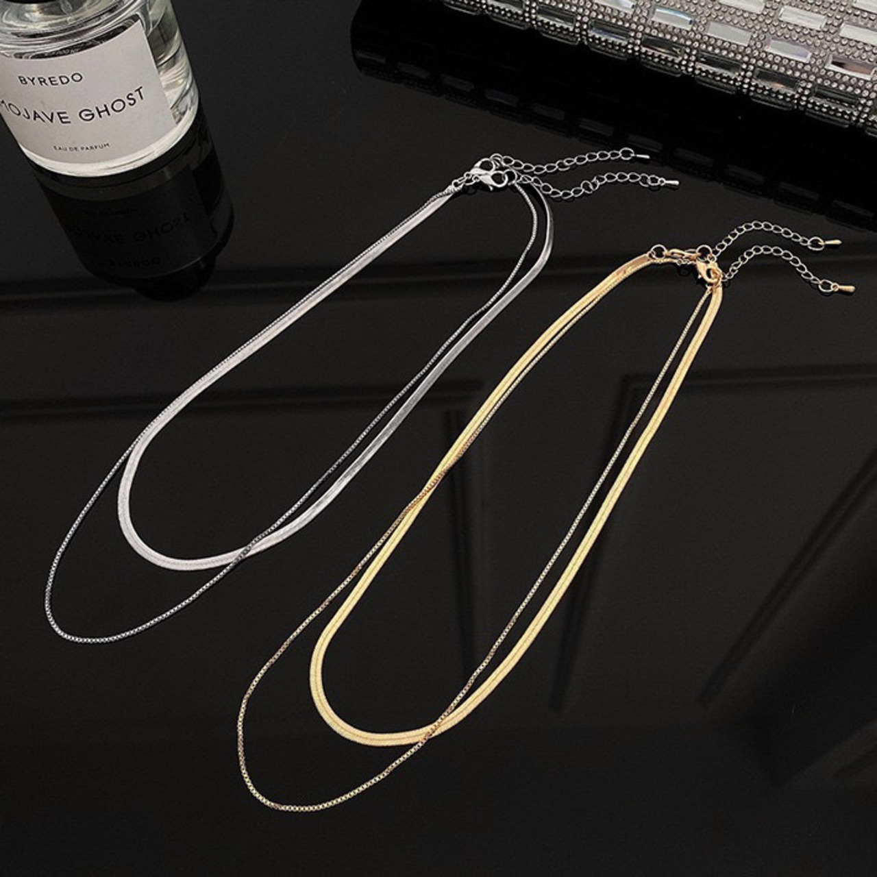 スネークと華奢なチェーンの異なる表情を組み合わせて2連にしたネックレス。