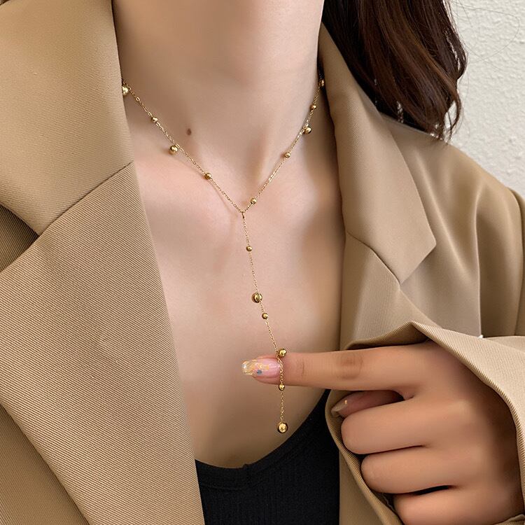 顔周りをすっきりと見せてくれるY字シルエットもポイントです。