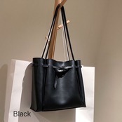 大人の風格漂うレザー調のテキスタイルで仕立てた、ベルトデザインハンドバッグ。