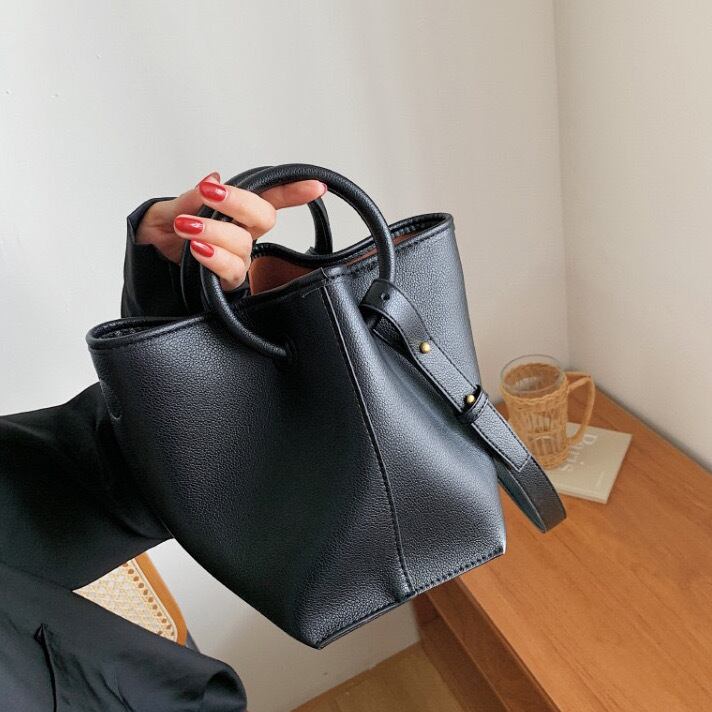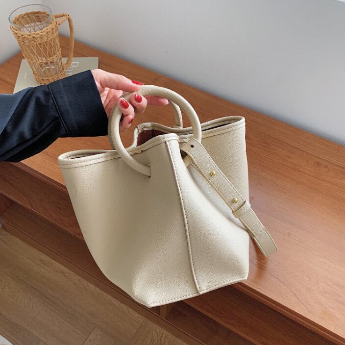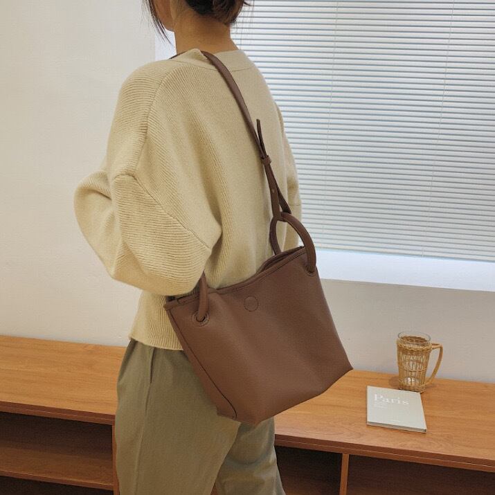 ハンドルとショルダーストラップを組み合わせた個性的なバッグです。