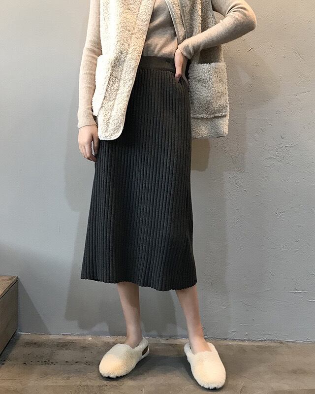 シンプルなデザインなので、トップスを選ばず着回せるカラースカートです。