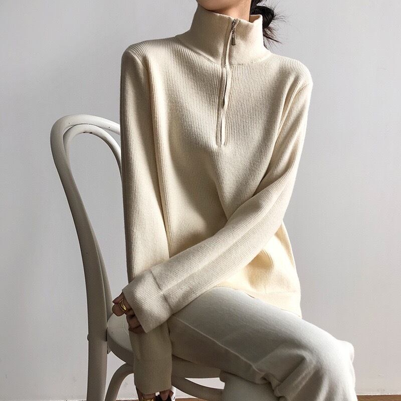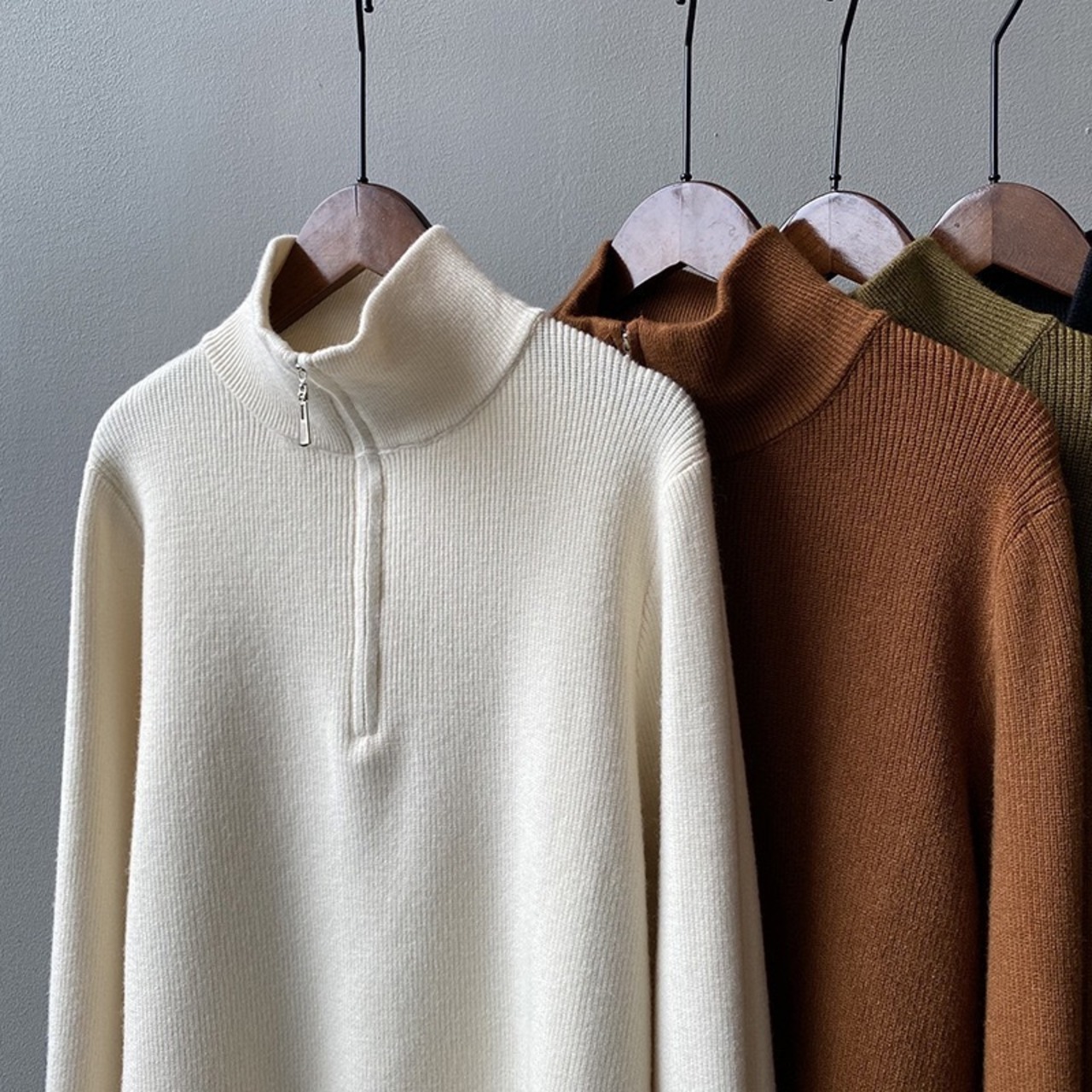 デニムに合わせるだけでこなれてきまるハーフジッププルオーバー。