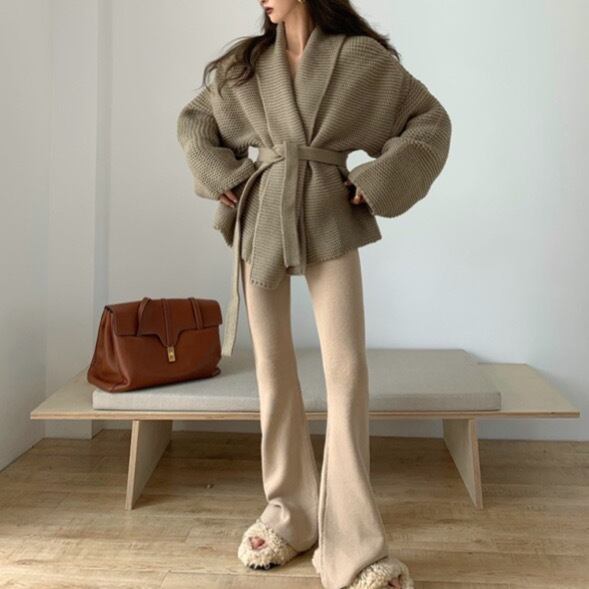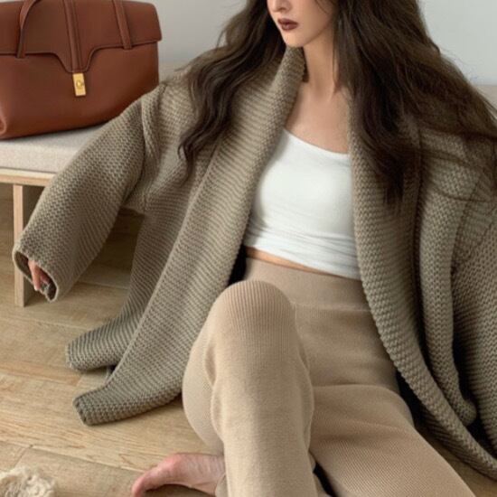 ゆるっと羽織れるワイドシルエットのガウンカーディガン。