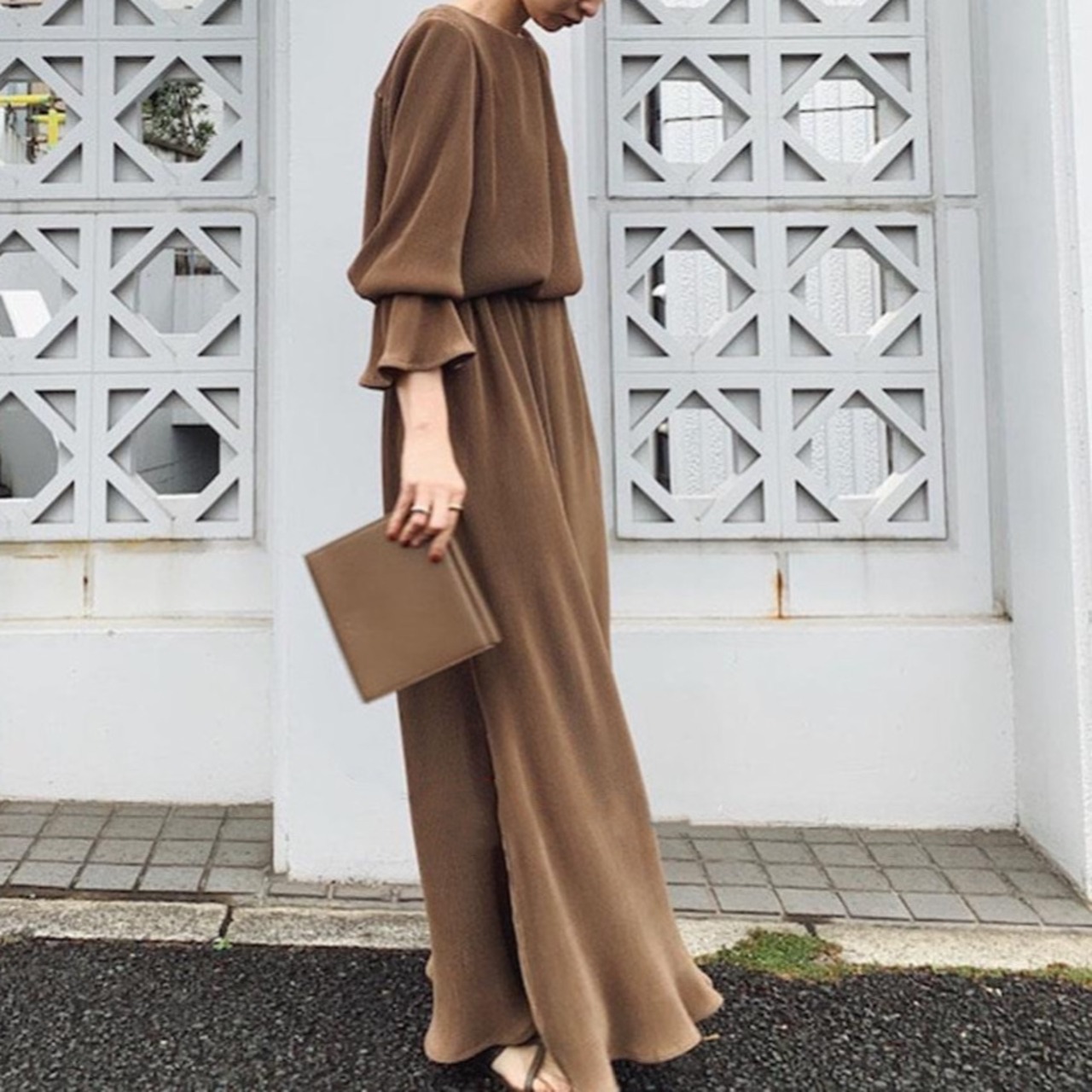 気になるウエストラインから足元にかけてふんわり広がるフレアラインに体型カバー効果も期待できます。